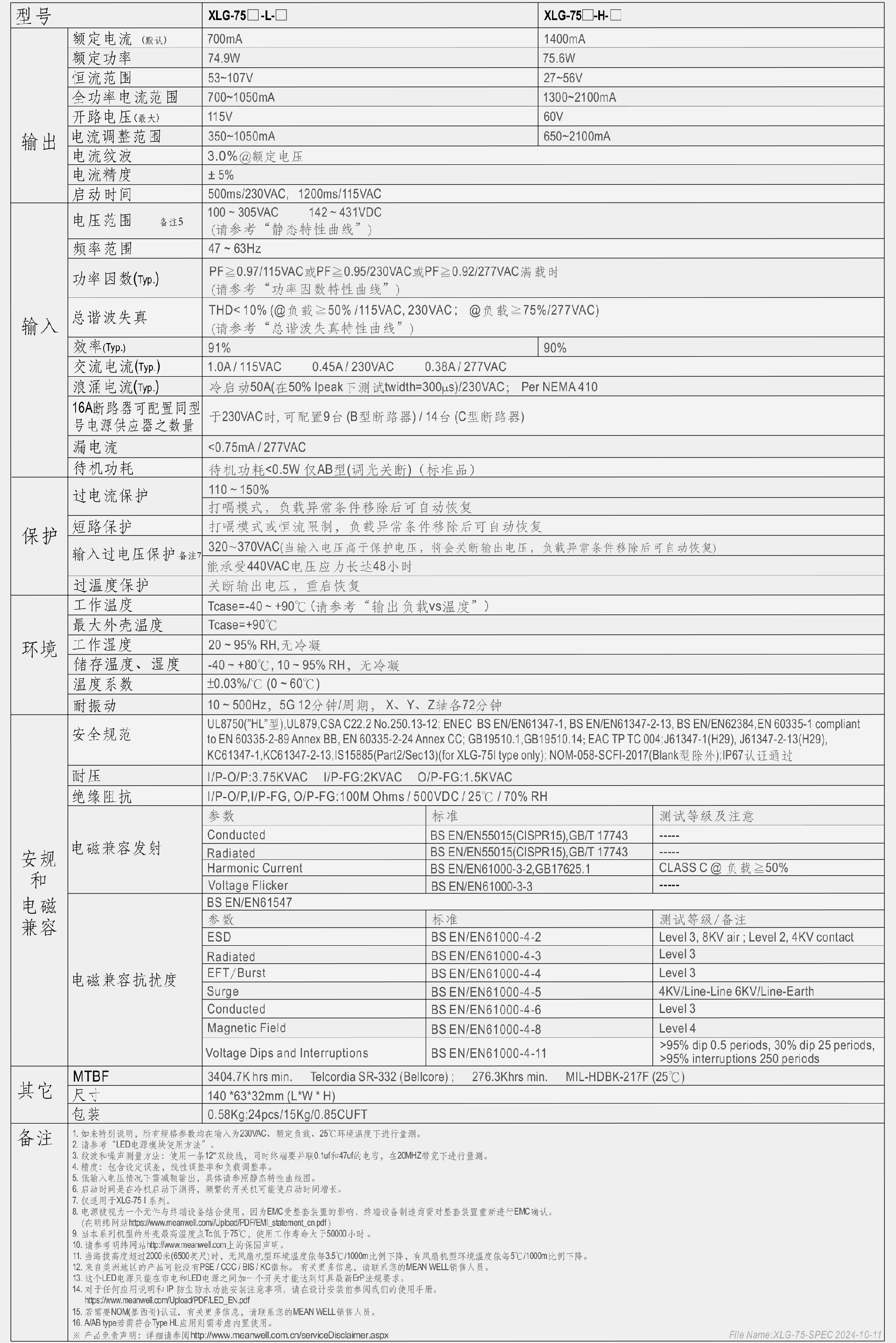 XLG-75系列是一款75W交流变直流LED电源供应器,以恒功率模式为特点。此系列机型可工作在输入电压为100-305VAC,并提供输出额定电流介于700mA-5000mA间的多种机型。因具有最高可达91%的转换效率采用无风扇设计,可于自然风冷散热下工作于-40℃~+90℃之机壳温度范围。金属外壳以IP67高防护等级之设计,使得XLG-75对于户内或户外的应用均适用。此外,创新的设计与小巧的尺寸使得此系列机型能够可靠地点亮LED灯,适用于几乎所有可安装LED 灯具的场所中的各种应用环境。XLG-75具有IEC61347/GB19510.1和UL8750等最新的国际安全规范证书。输出和调光线路也是符合最新的隔离设计要求,同时确保使用者和灯具系统在安装过程中的安全。