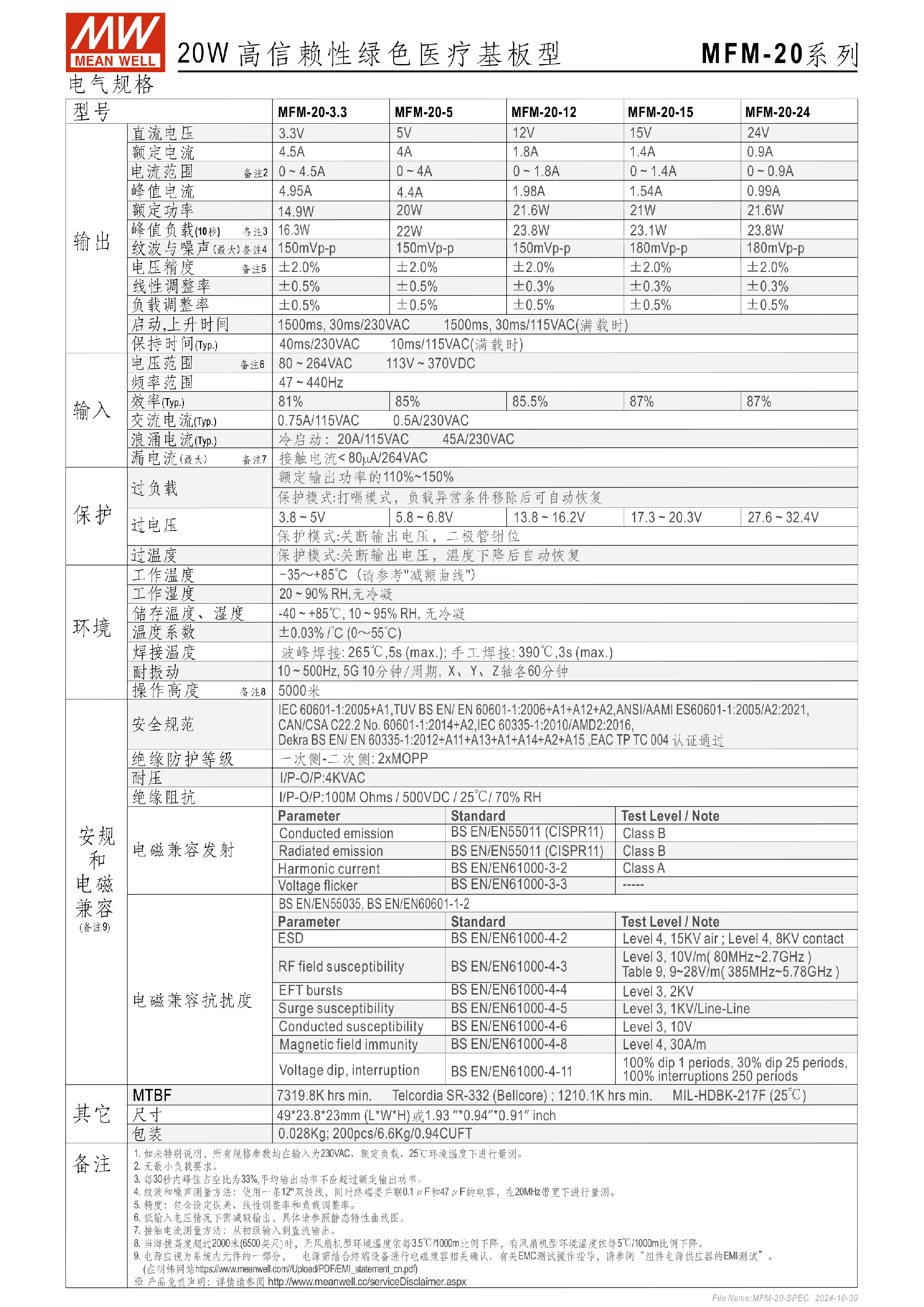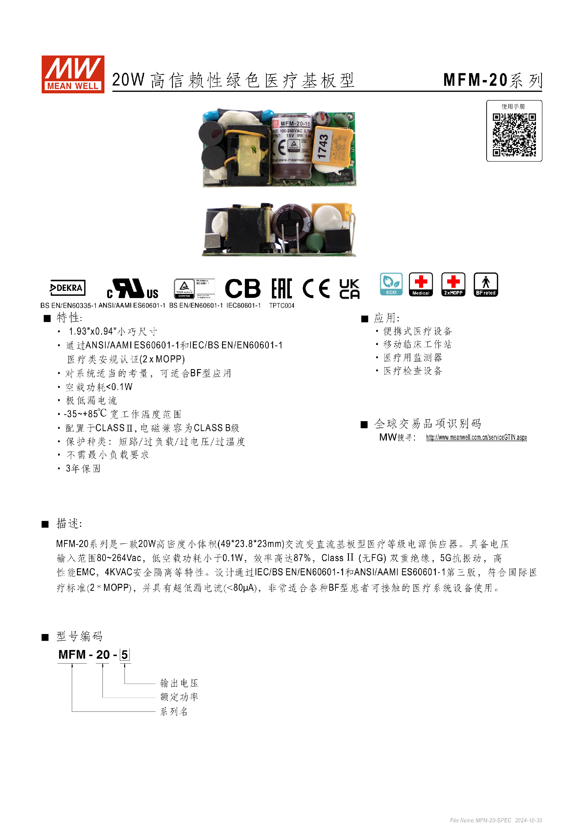 台湾明纬MFM-10系列医疗基板型电源供应器