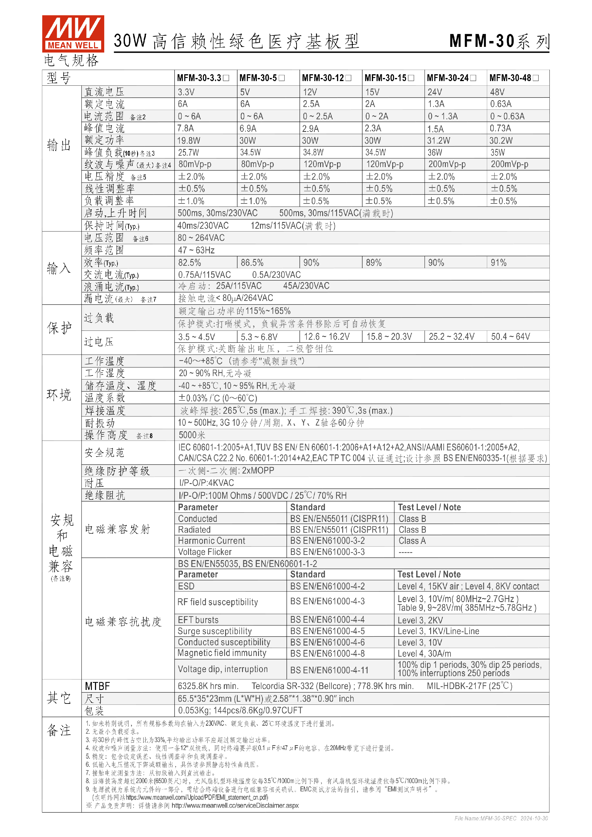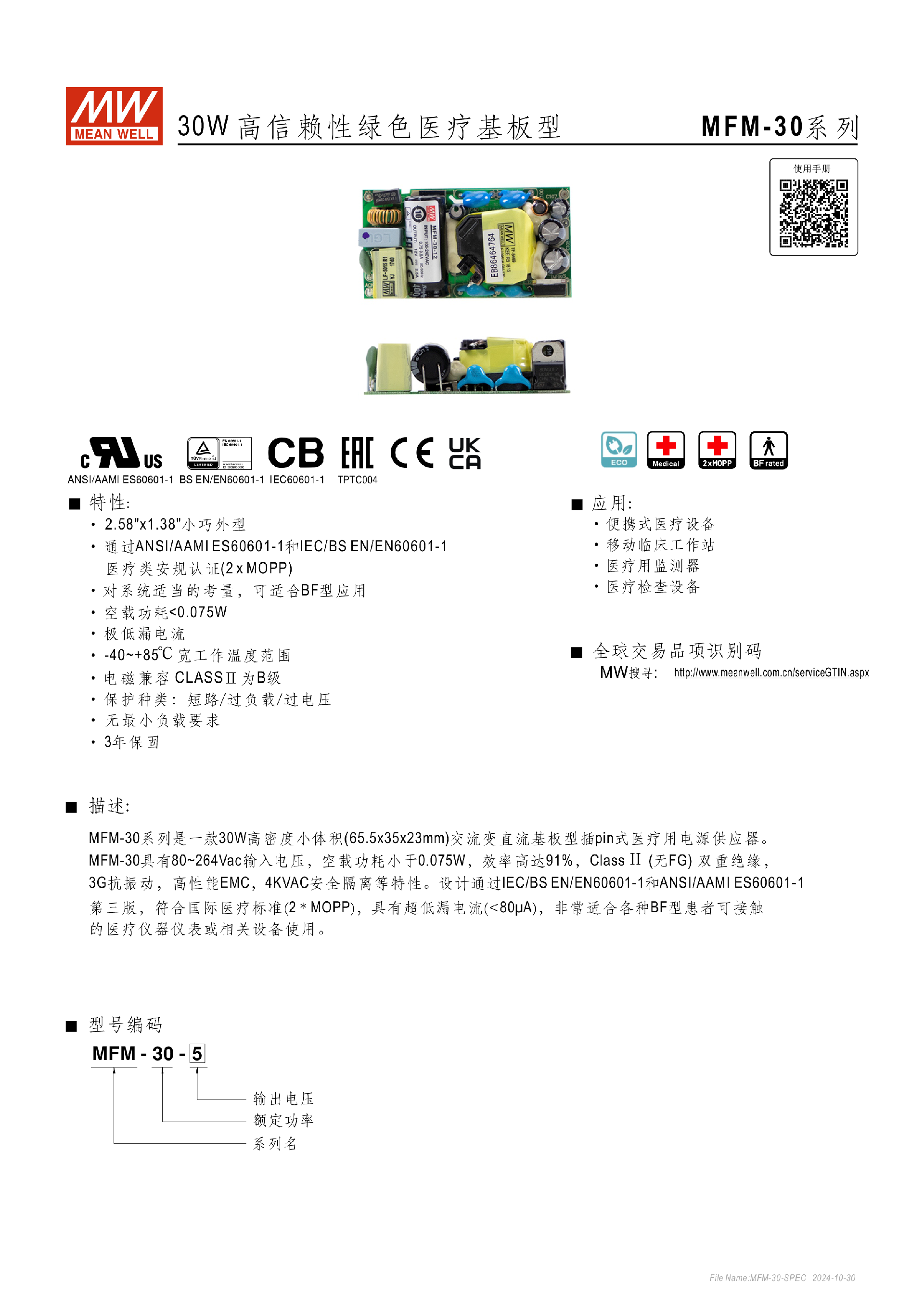 台湾明纬MFM-10系列医疗基板型电源供应器