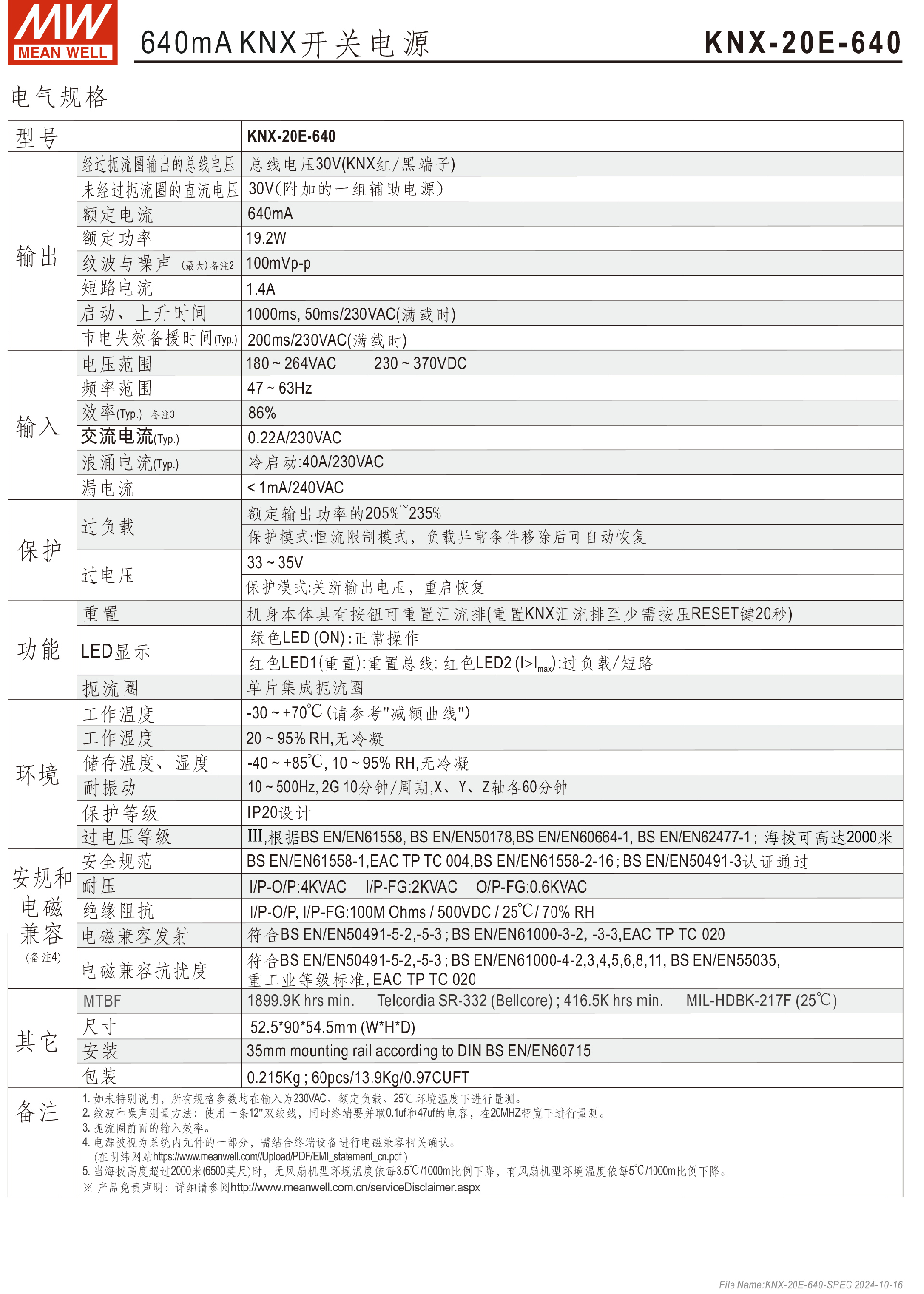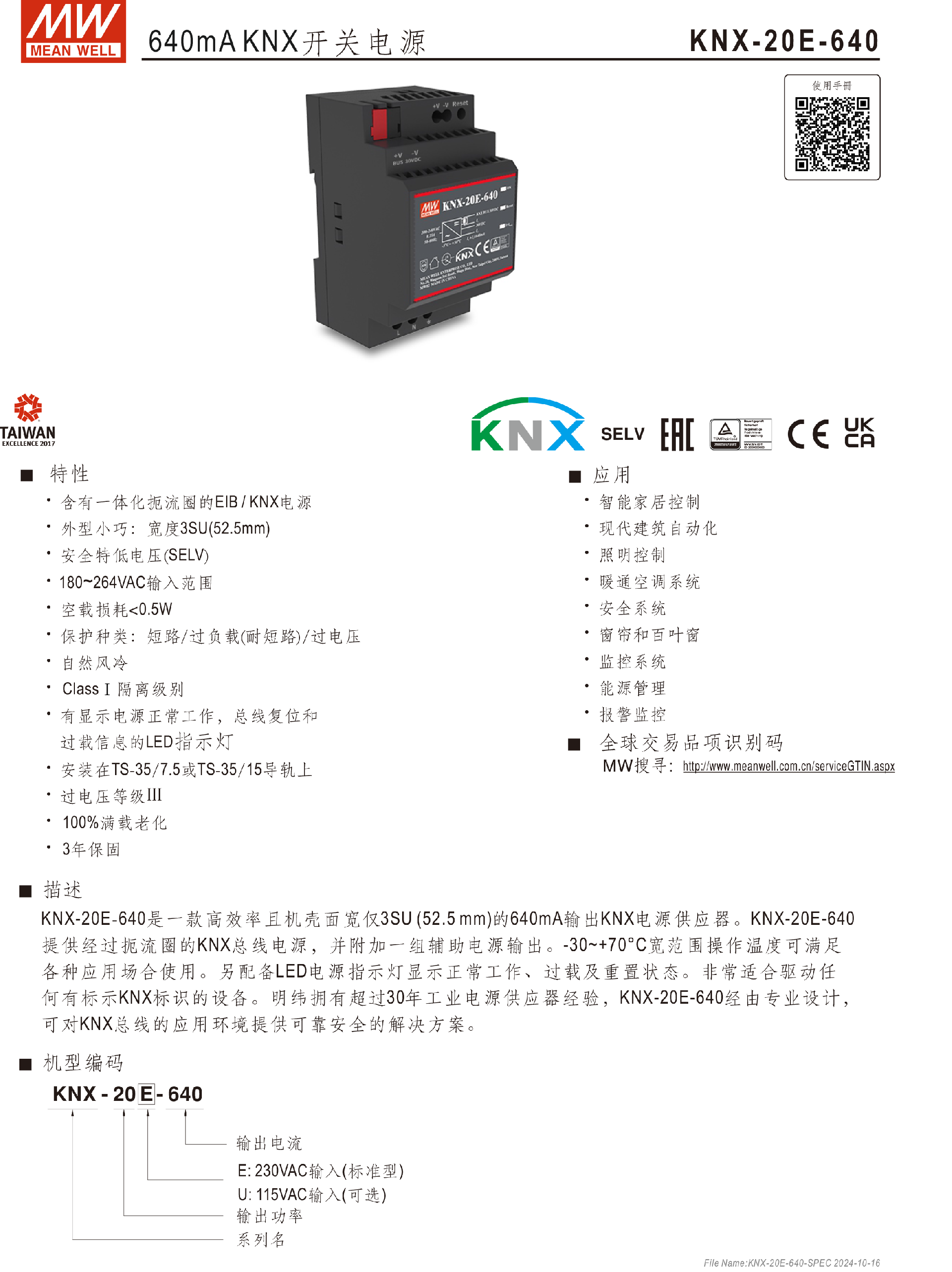 台湾明纬1280mA KNX开关电源KNX-40E-1280(D)