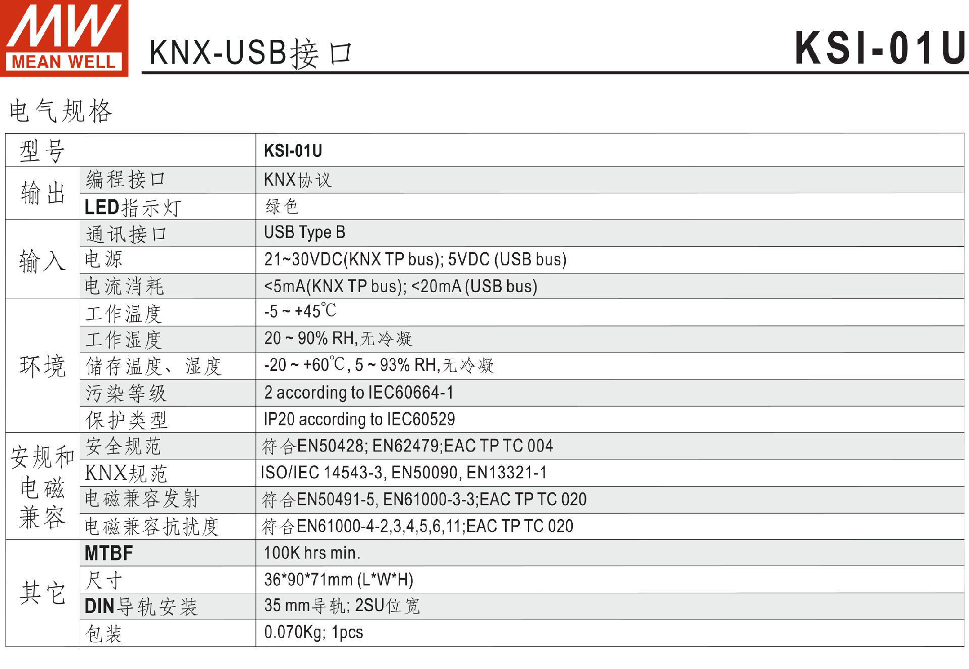 台湾明纬1280mA KNX开关电源KNX-40E-1280(D)