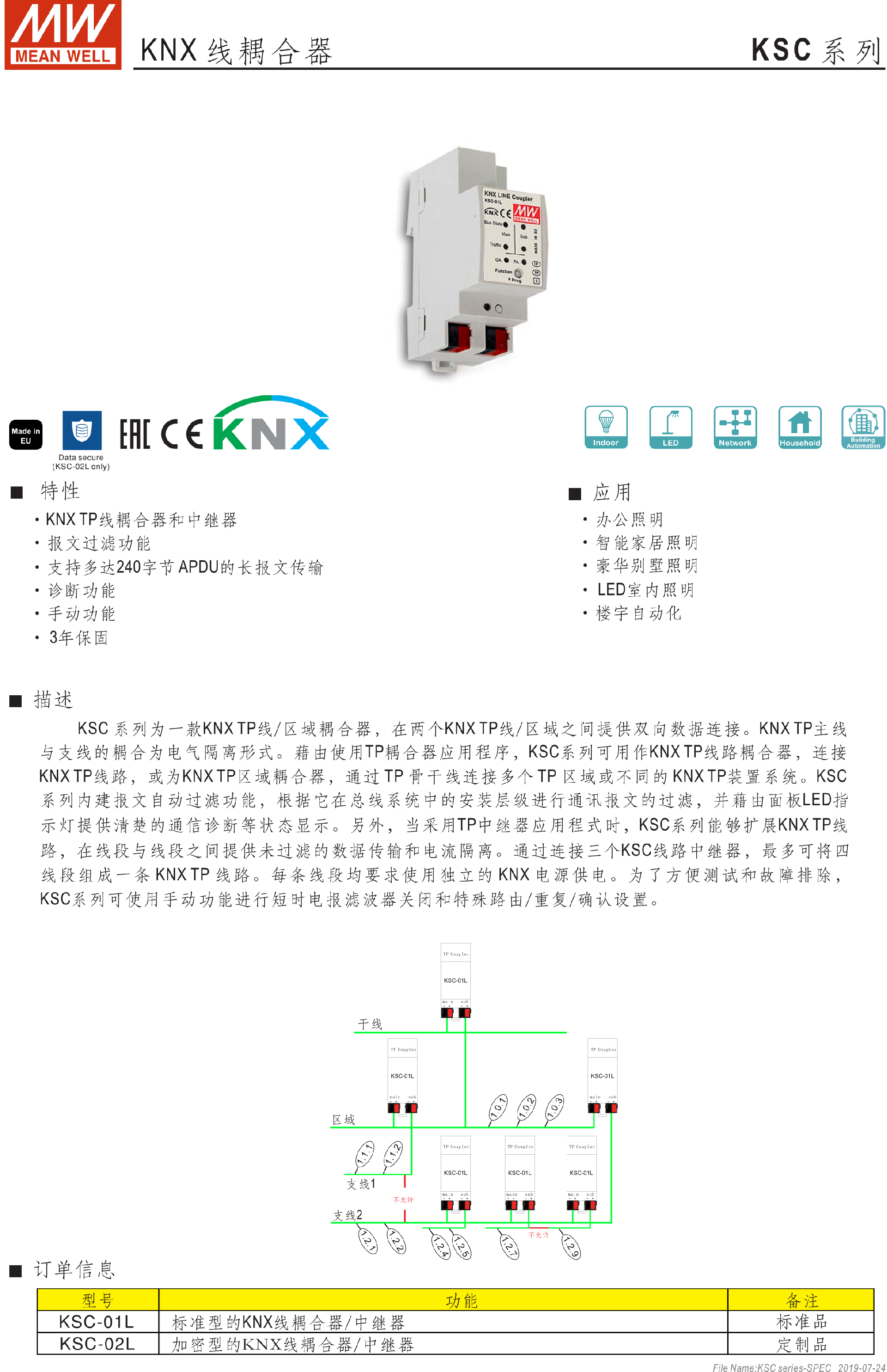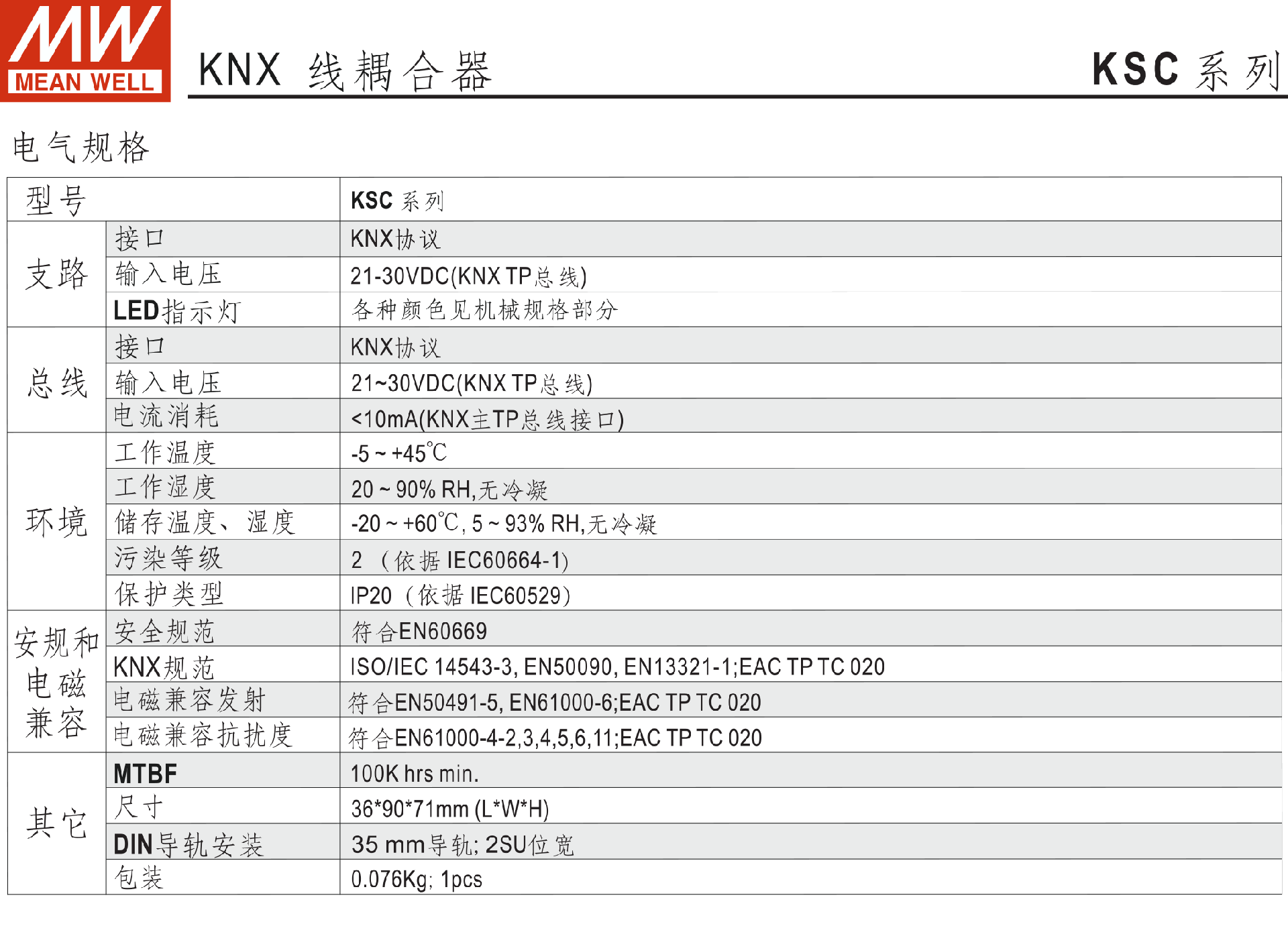 台湾明纬1280mA KNX开关电源KNX-40E-1280(D)