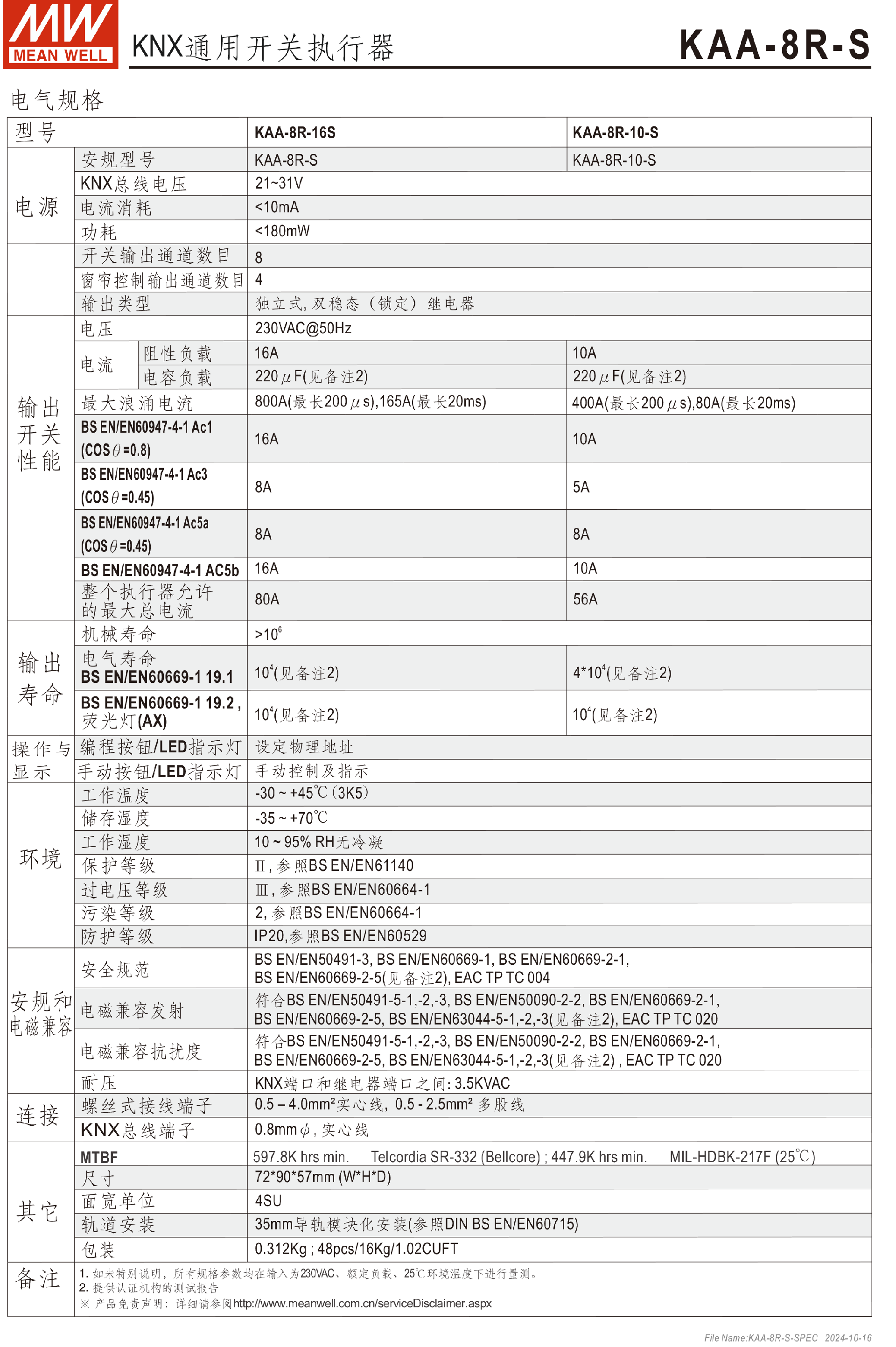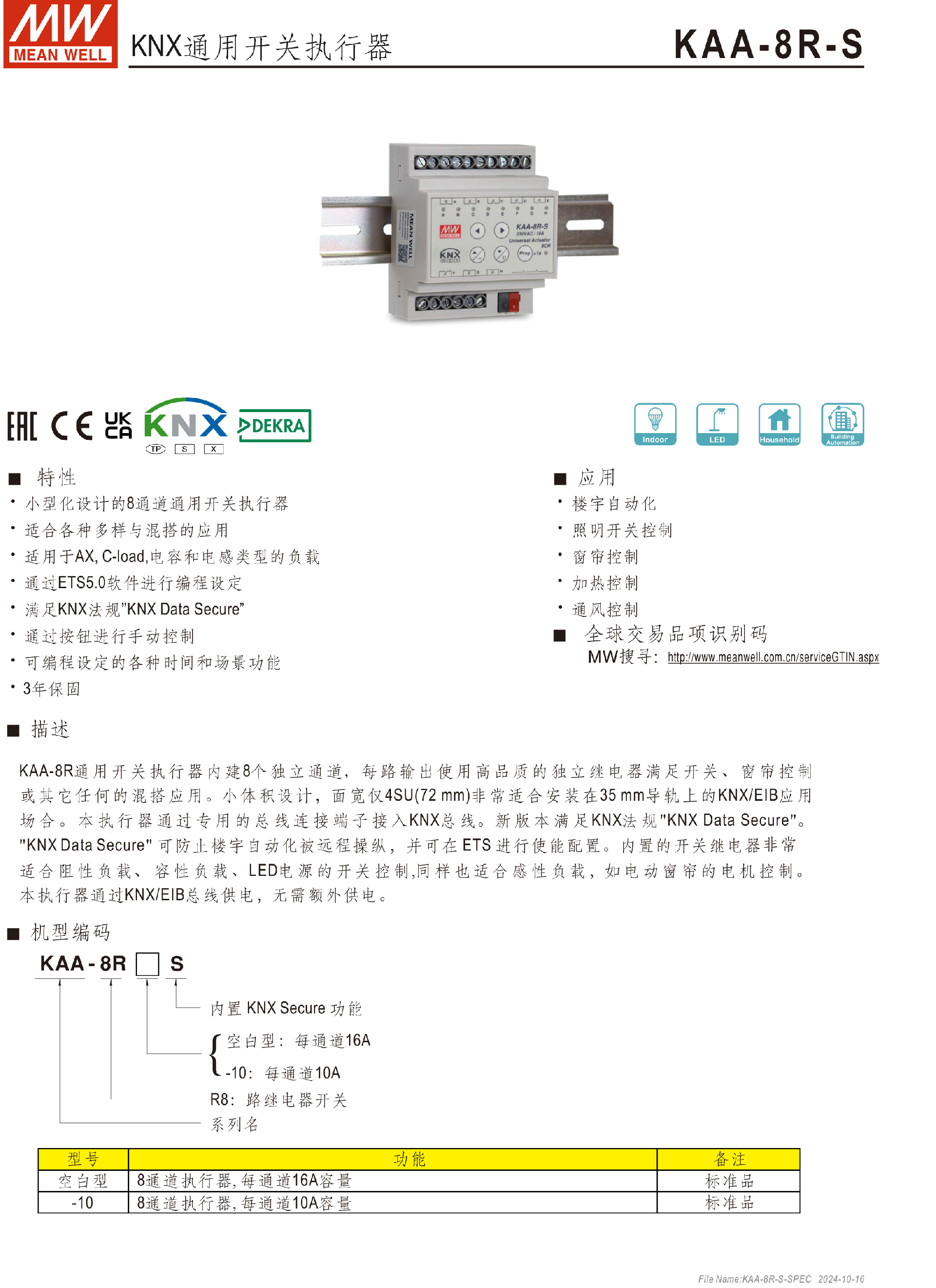 台湾明纬KNX LED执行器/调光器KAA-4R4V-10S