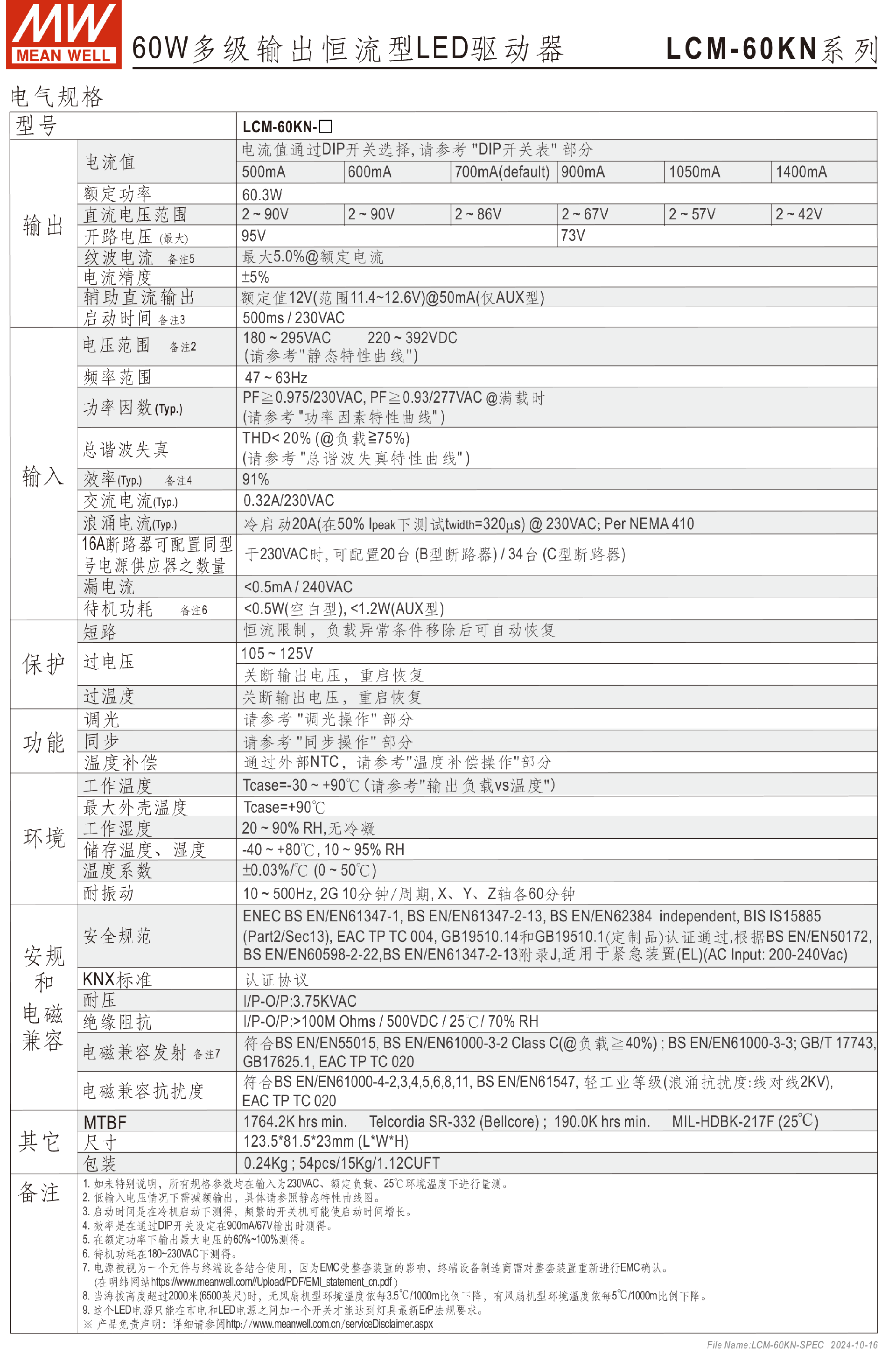 台湾明纬40W多级输出LED驱动器LCM-40KN系列