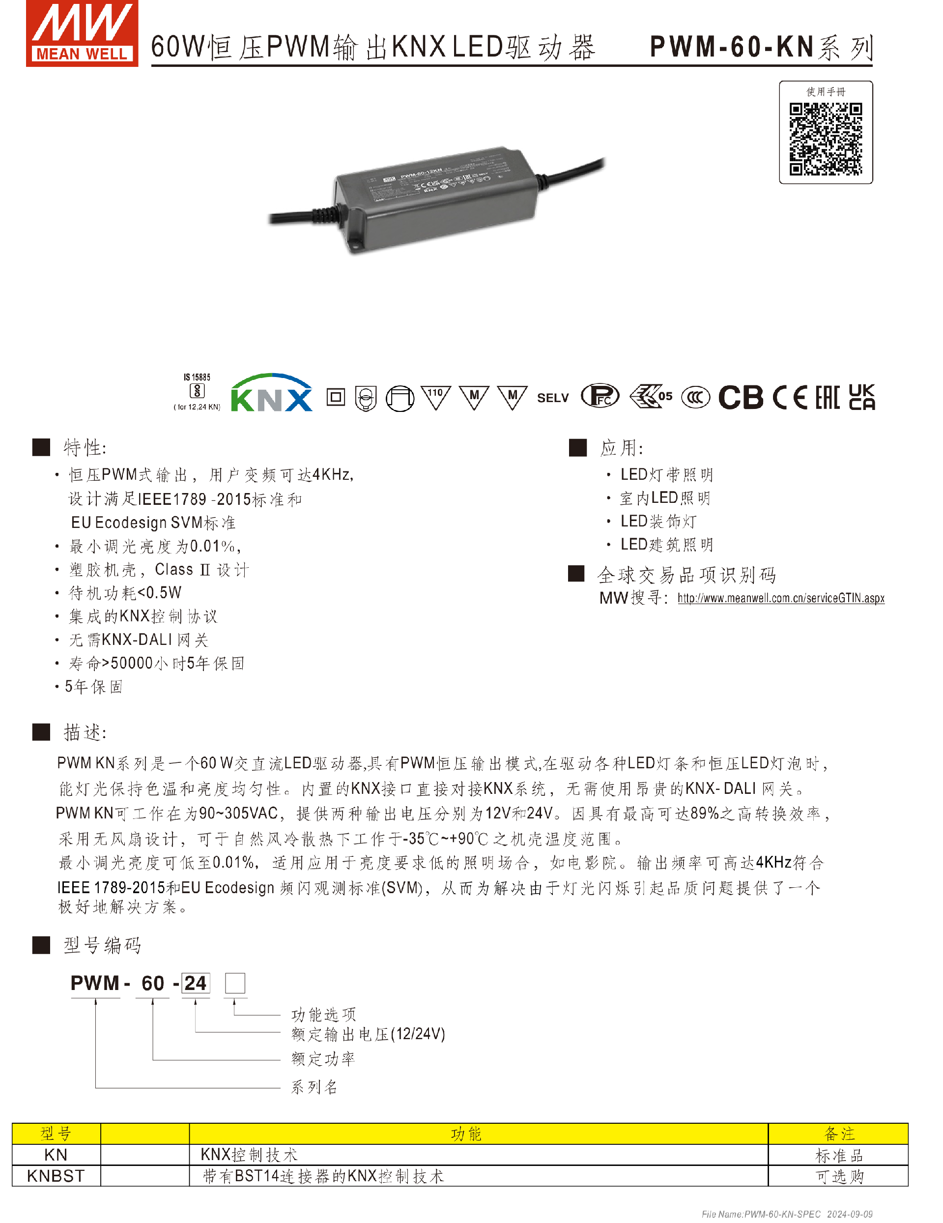 台湾明纬PWM-120-KN系列120W恒压PWM输出LED驱动器PWM-120-24KN