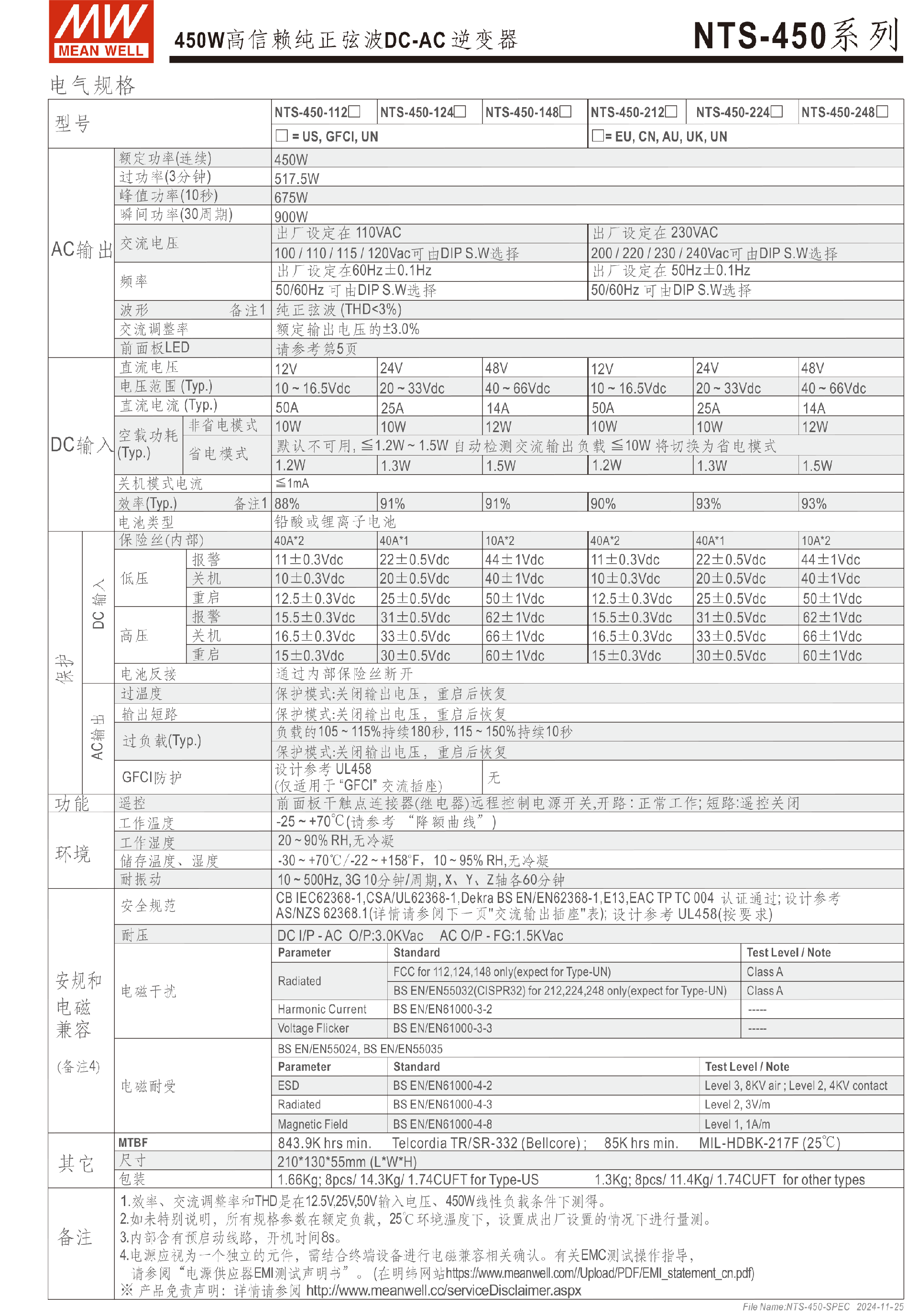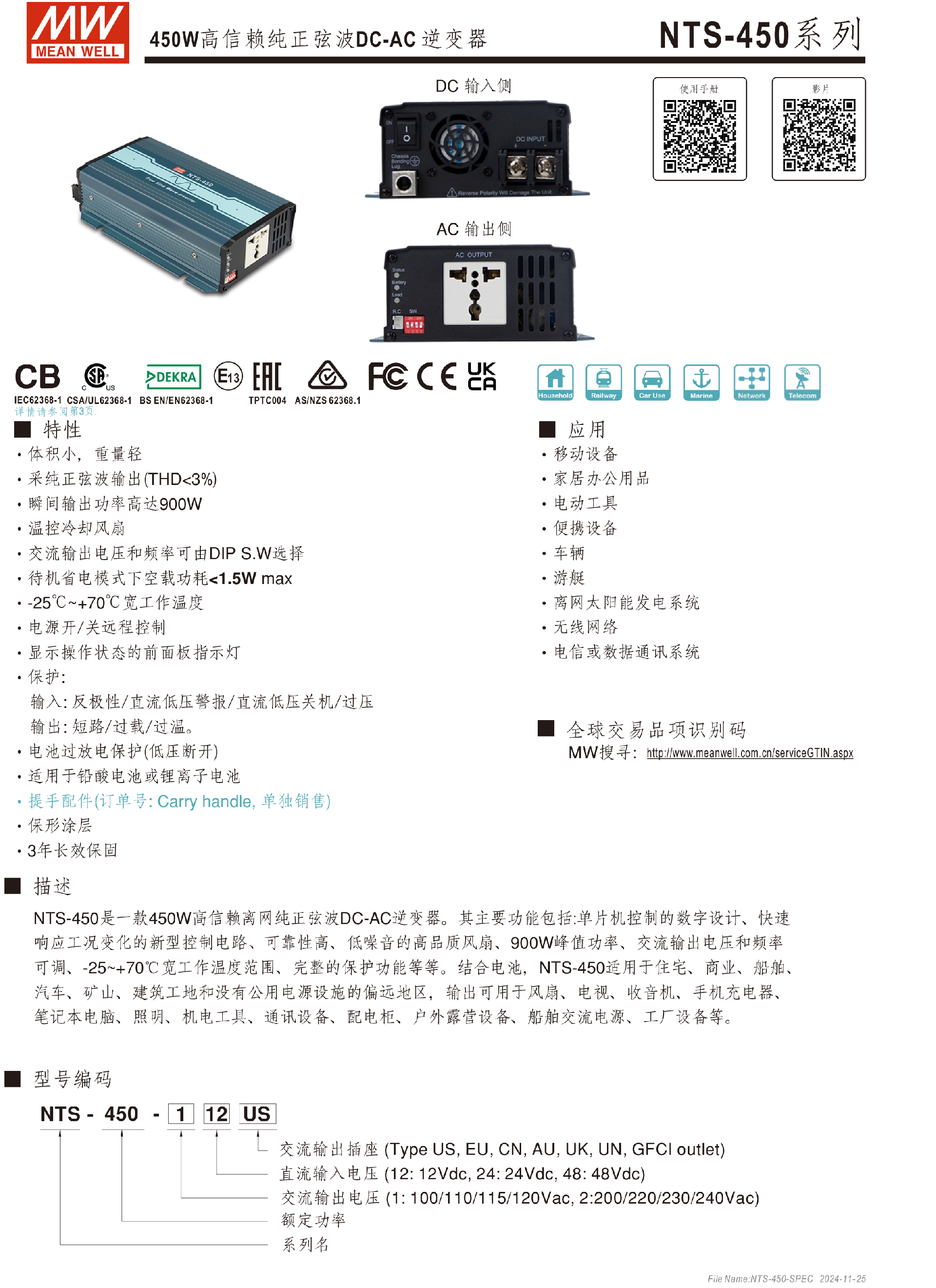 台湾明纬NTS-1700系列DC-AC逆变器