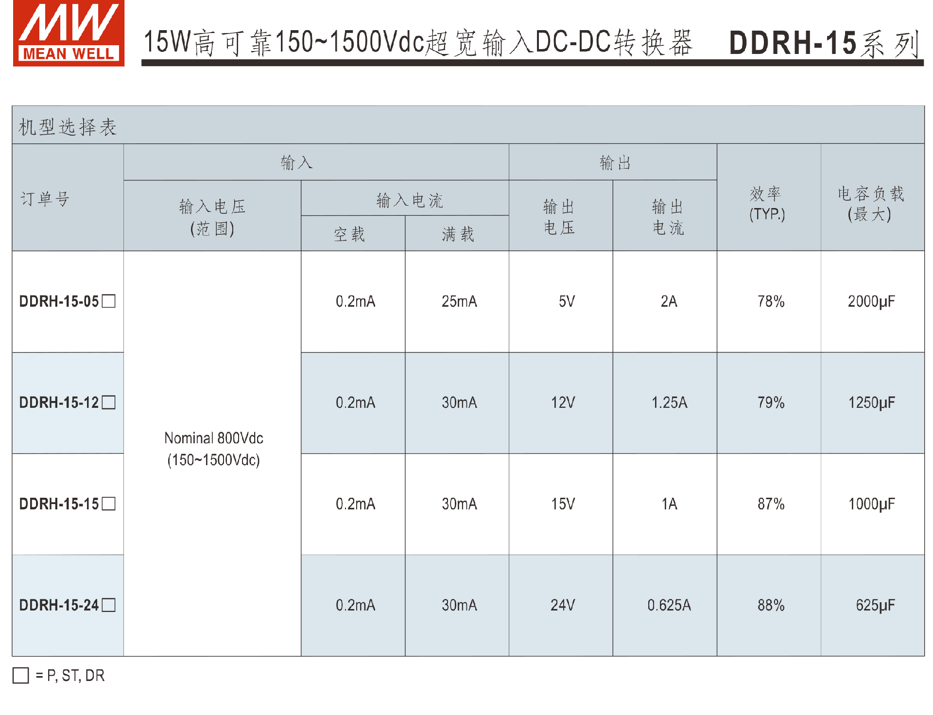 明纬电源DDRH-60系列150~1500Vdc超宽输入DC-DC转换器