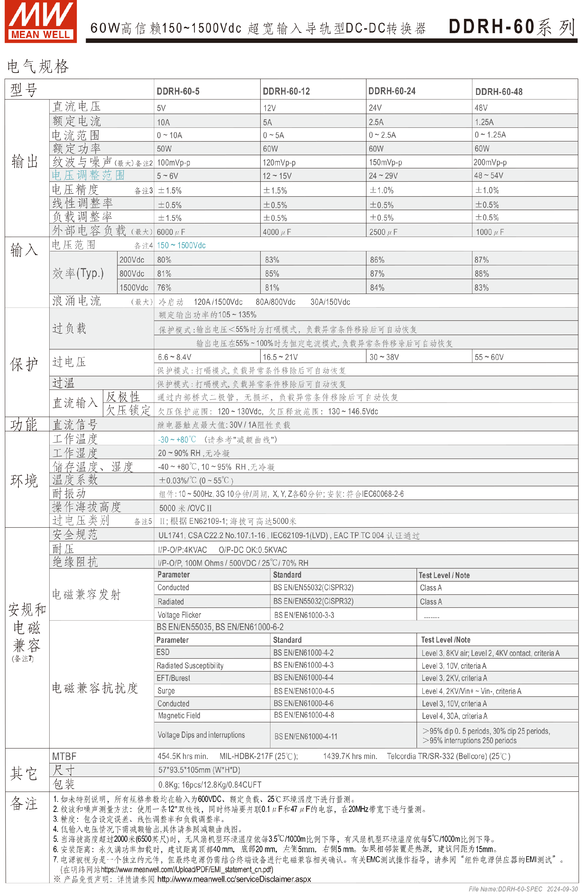 明纬电源DDRH-240系列250~1500Vdc超宽输入DC-DC转换器