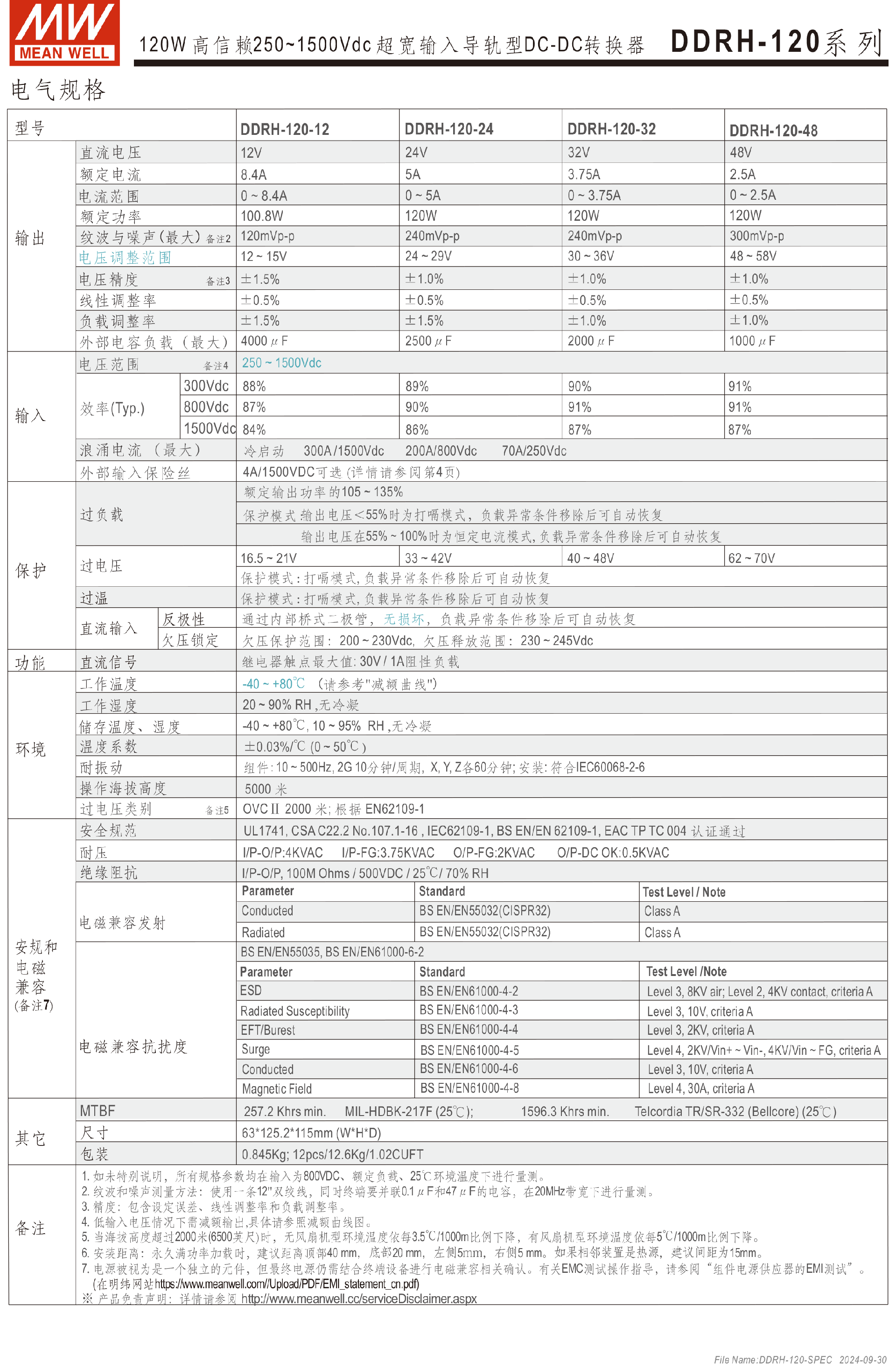 明纬电源DDRH-240系列250~1500Vdc超宽输入DC-DC转换器