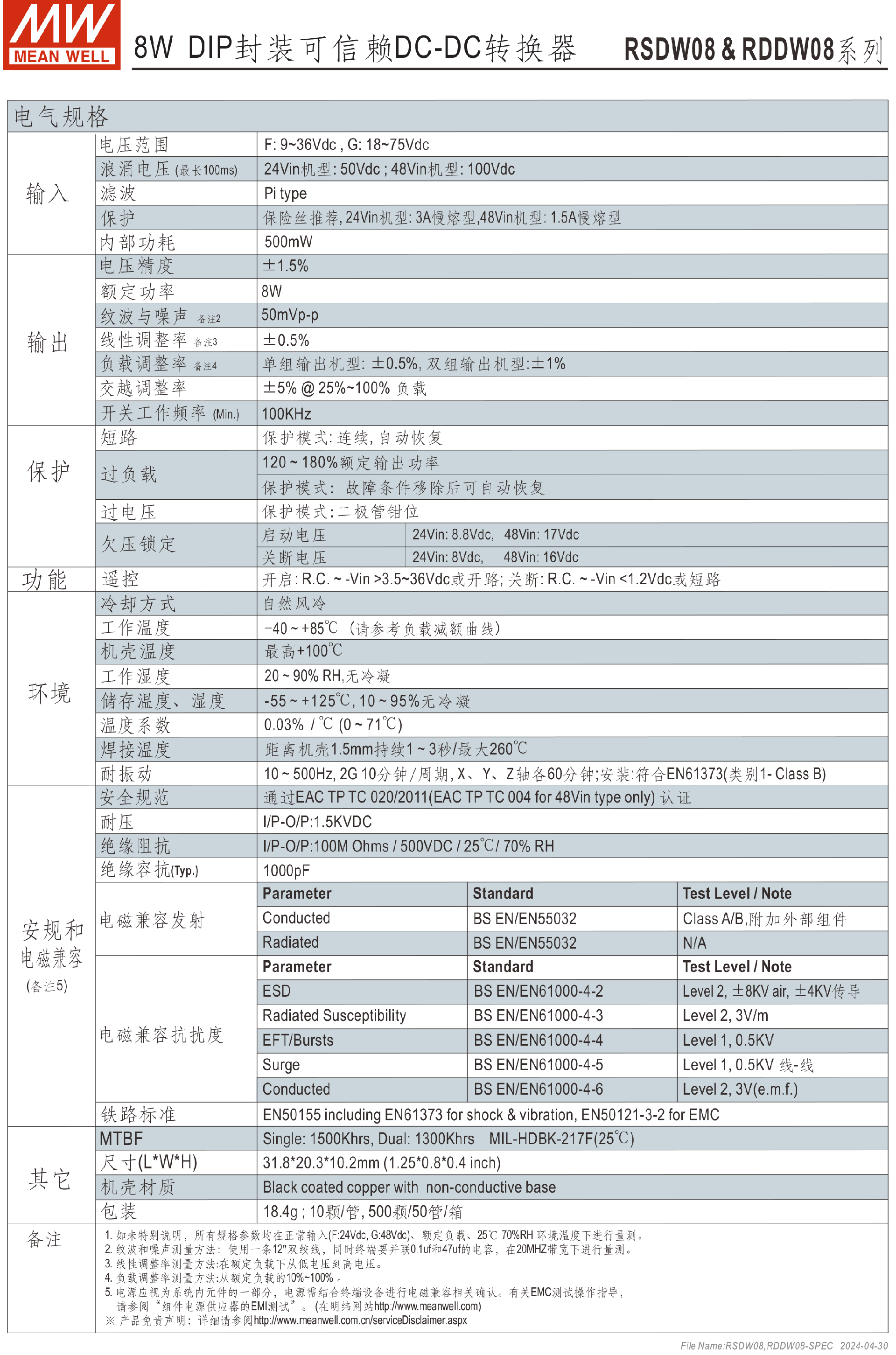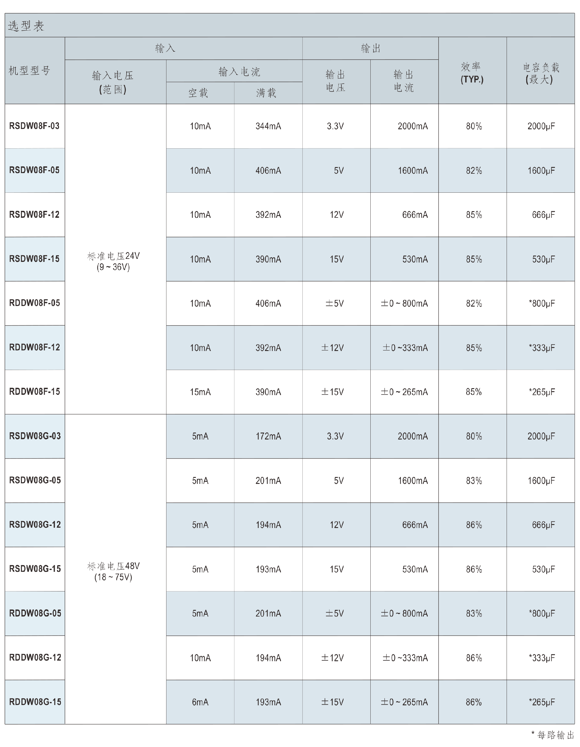 明纬电源DCW08系列8W DC-DC稳压双组输出转换器
