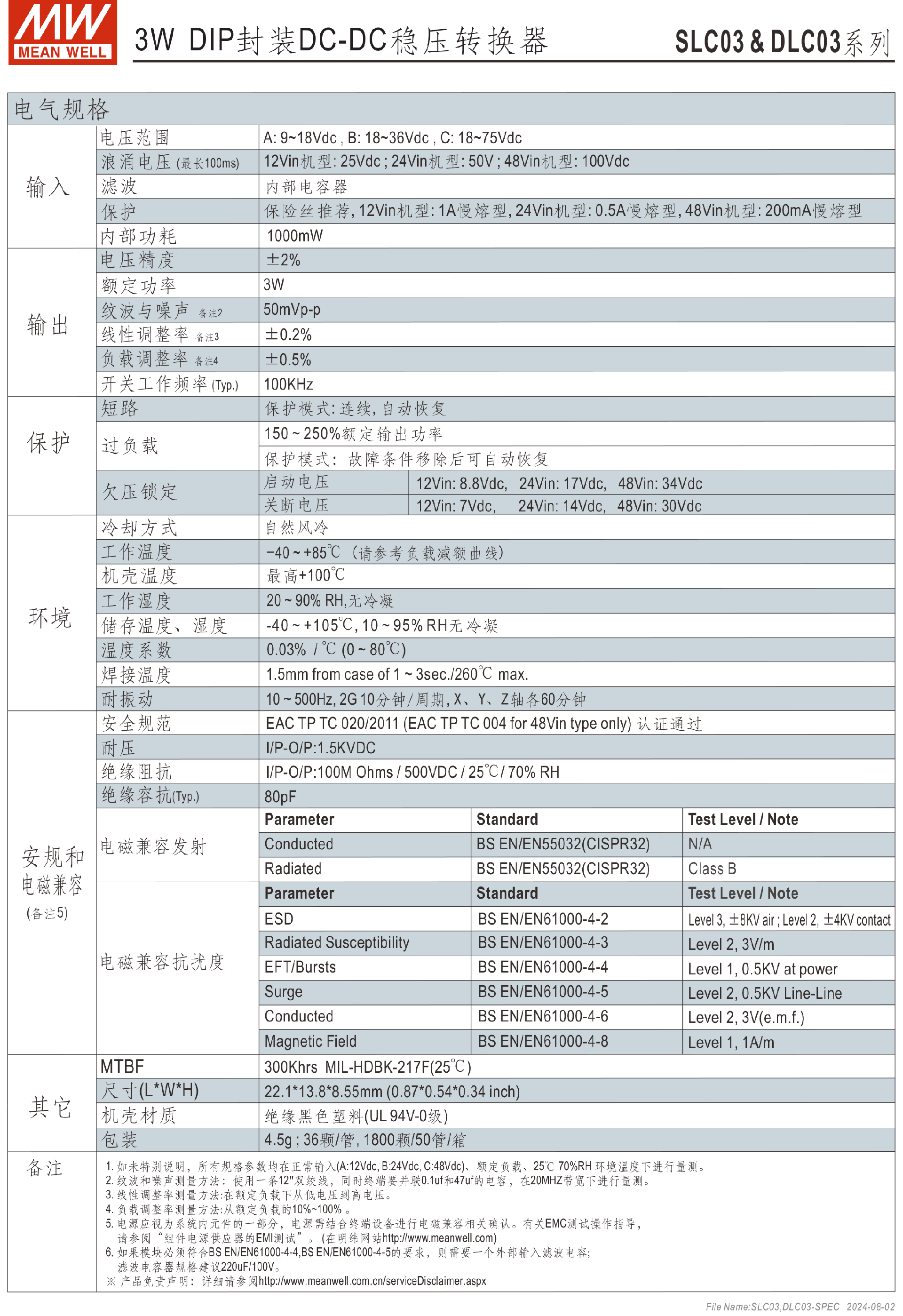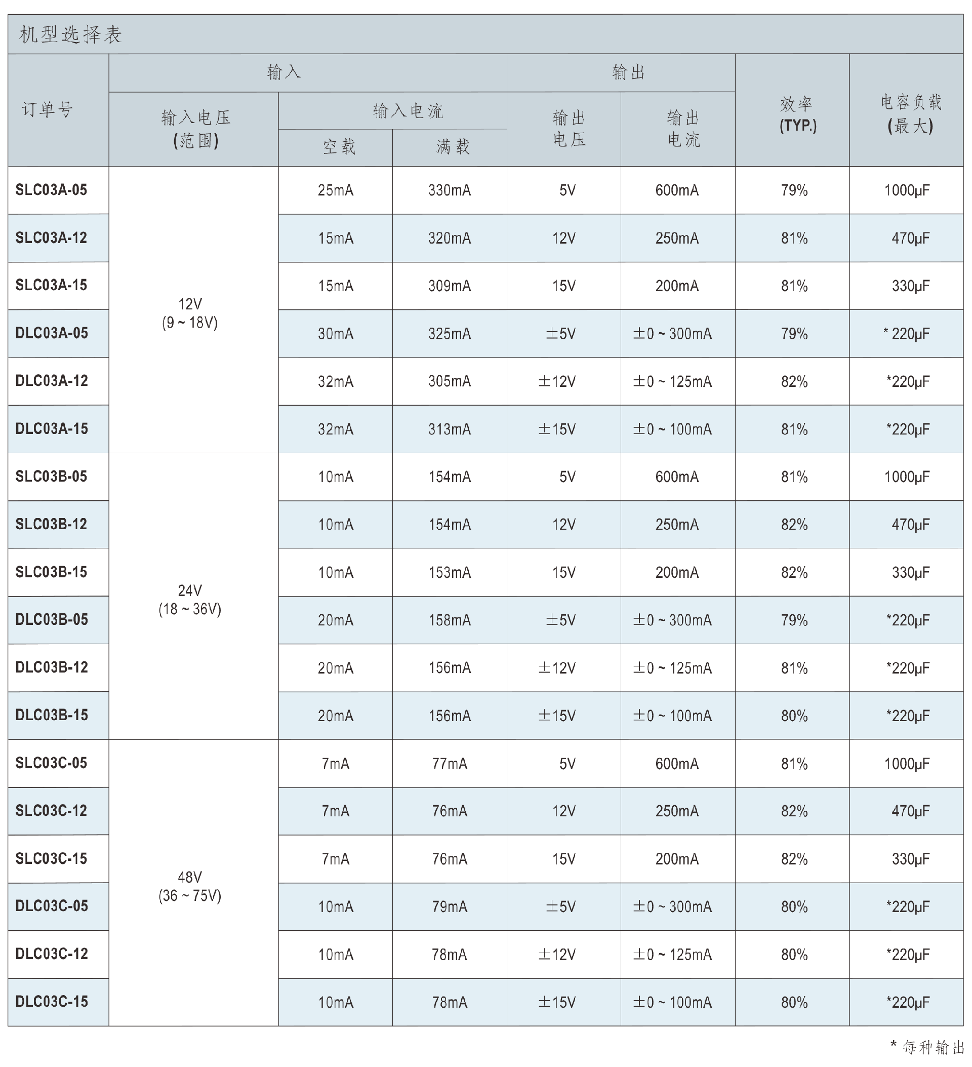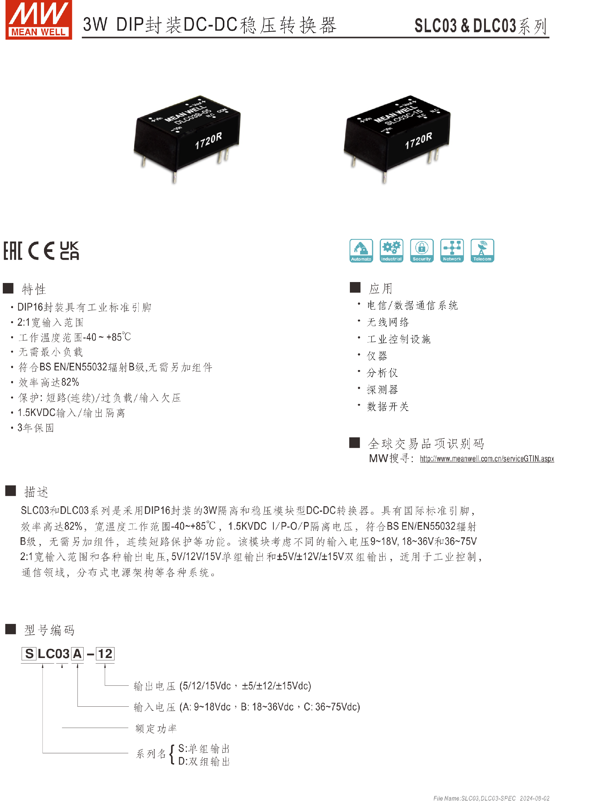 明纬电源SCWN03系列单组DCWN03系列双组3W DIP封装DC-DC稳压转换器