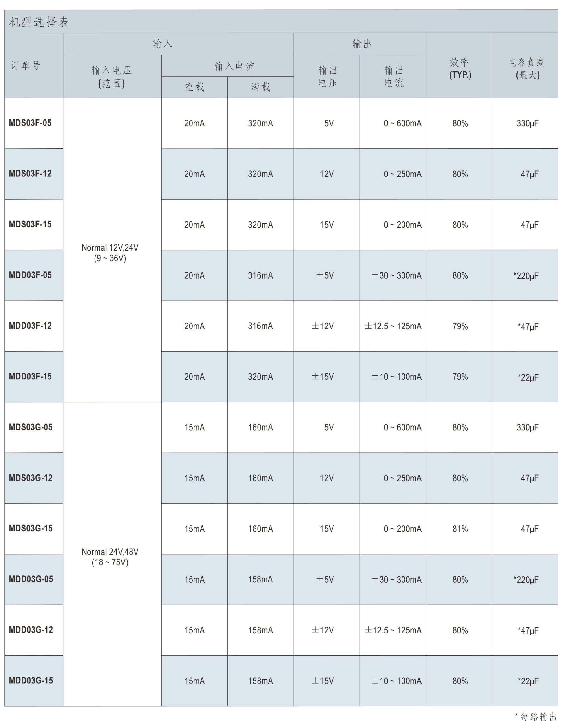明纬电源MDS15系列15W 封装DC-DC医疗级转换器