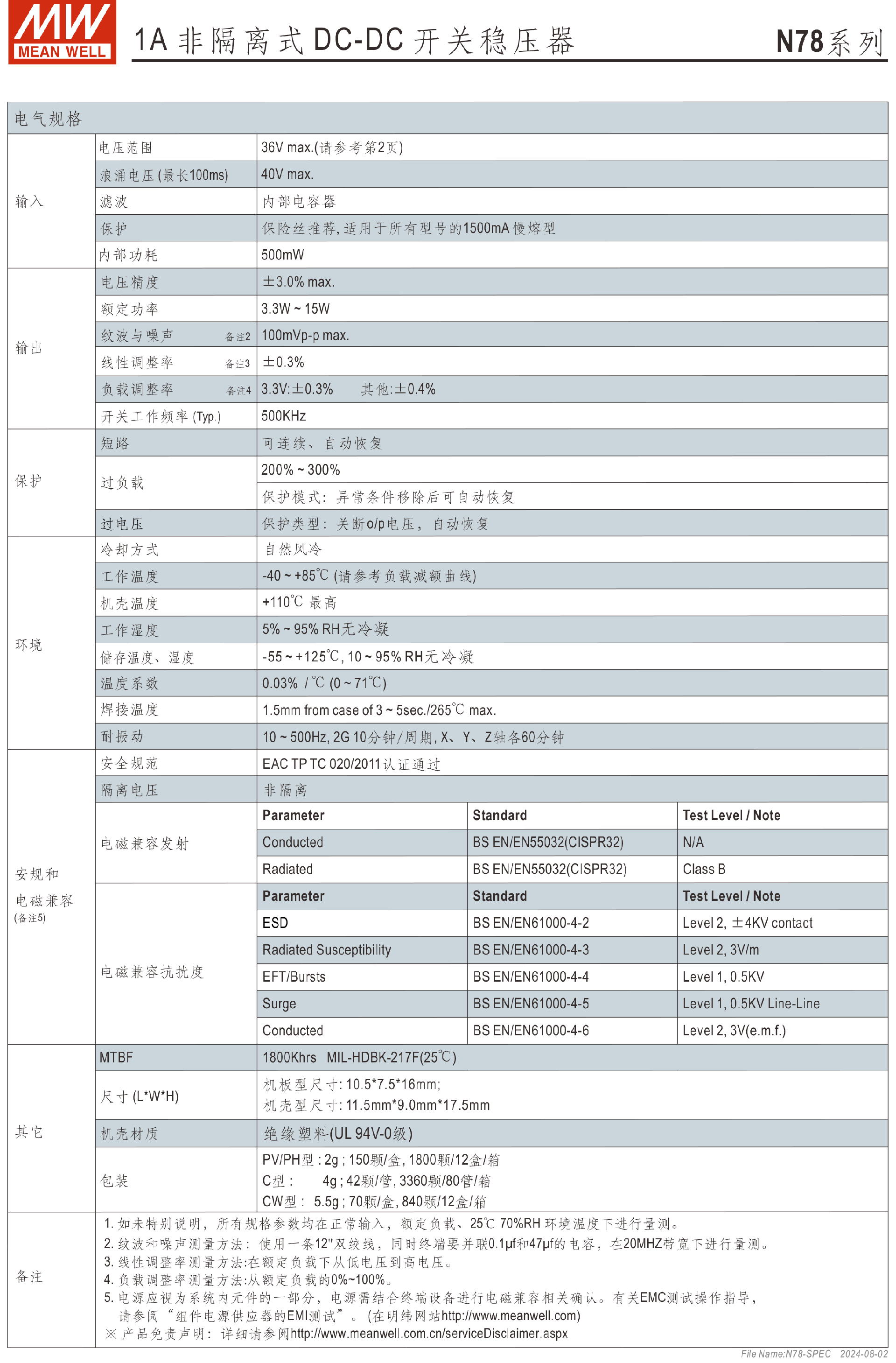 明纬电源N78-2系列2A非隔离式DC-DC开关稳压器