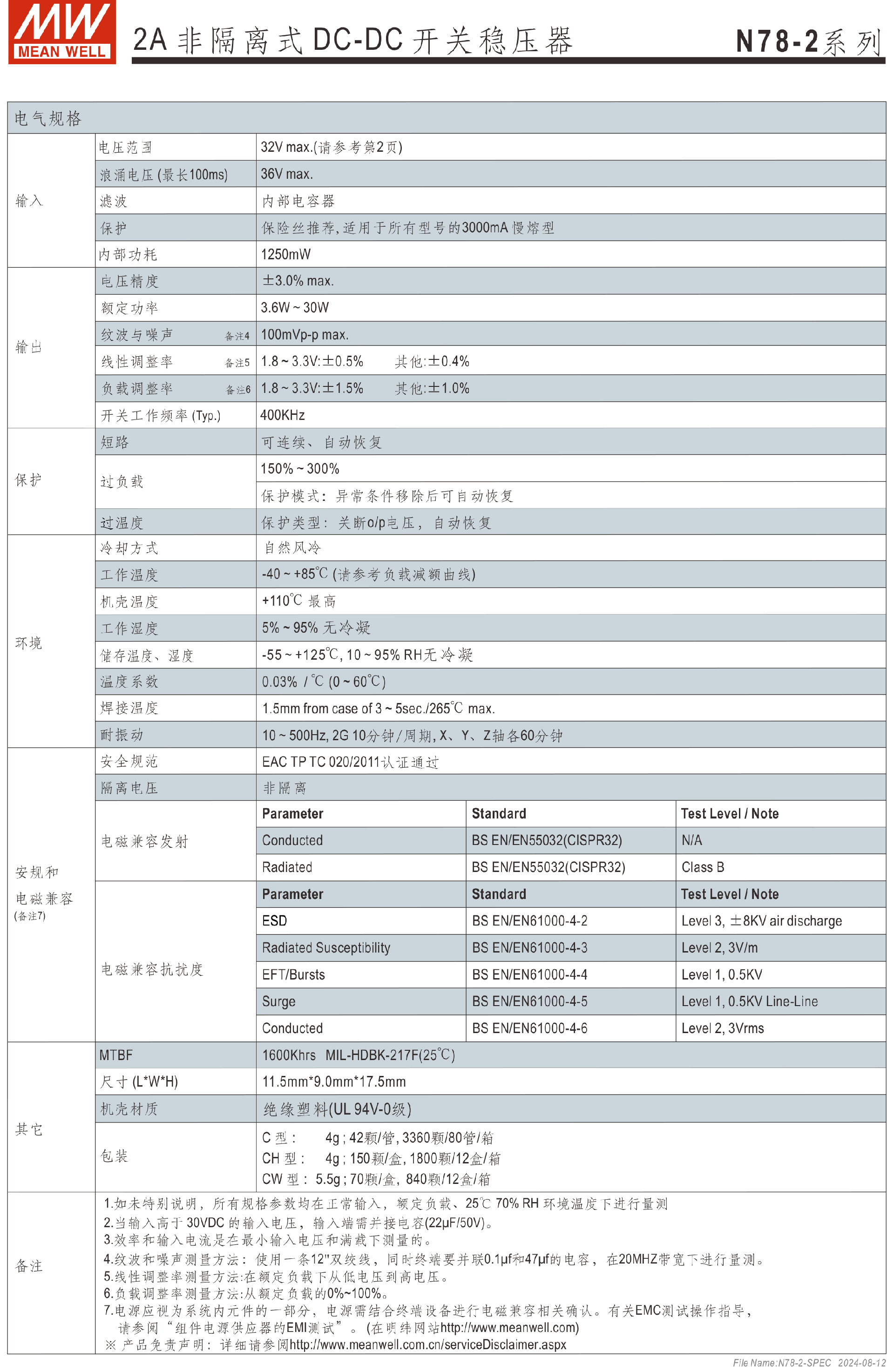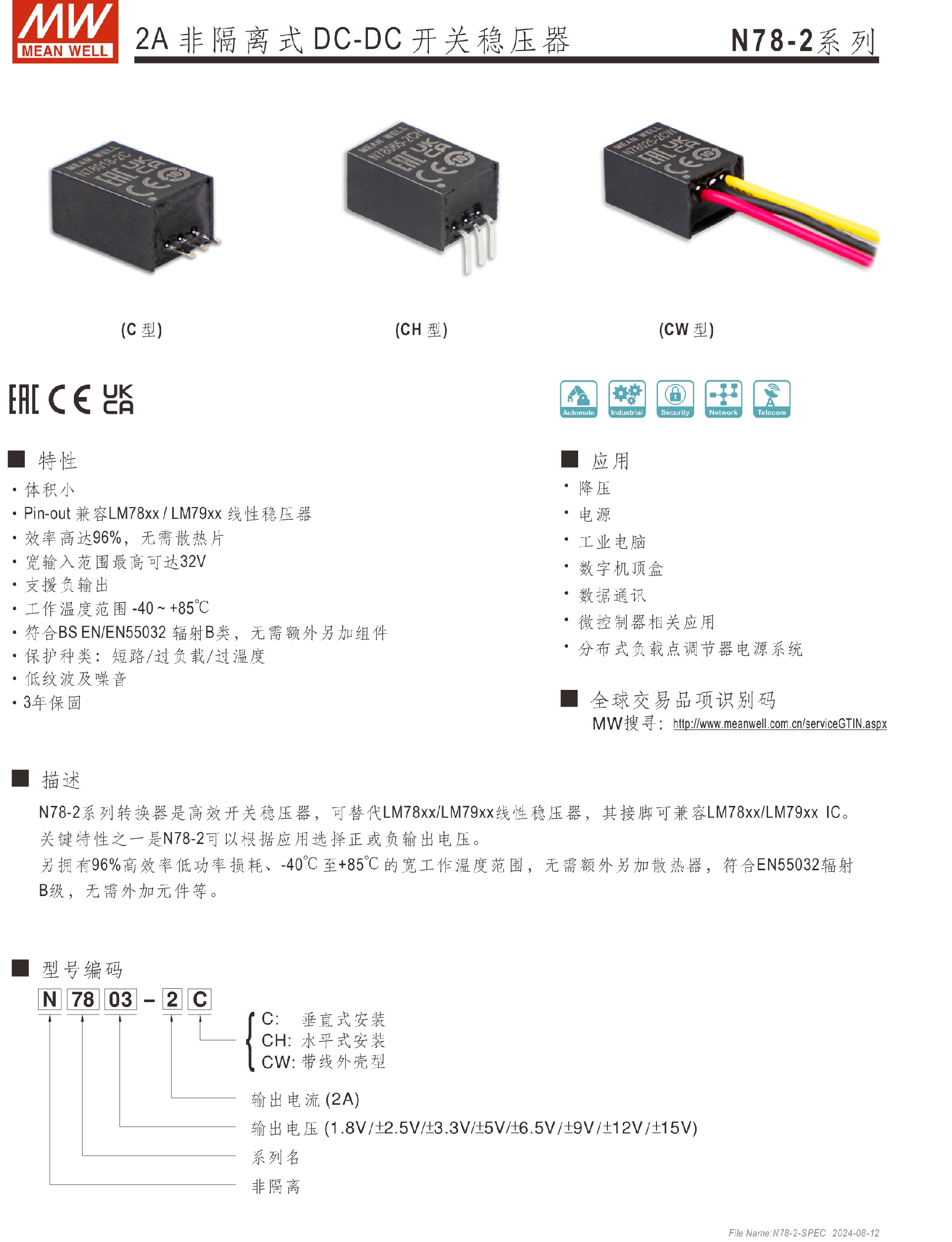 明纬电源N78系列1A非隔离式DC-DC开关稳压器
