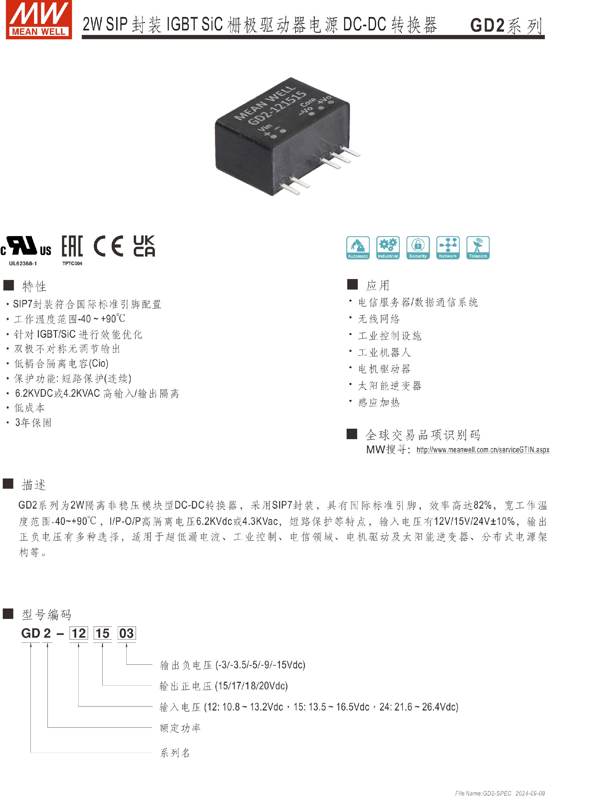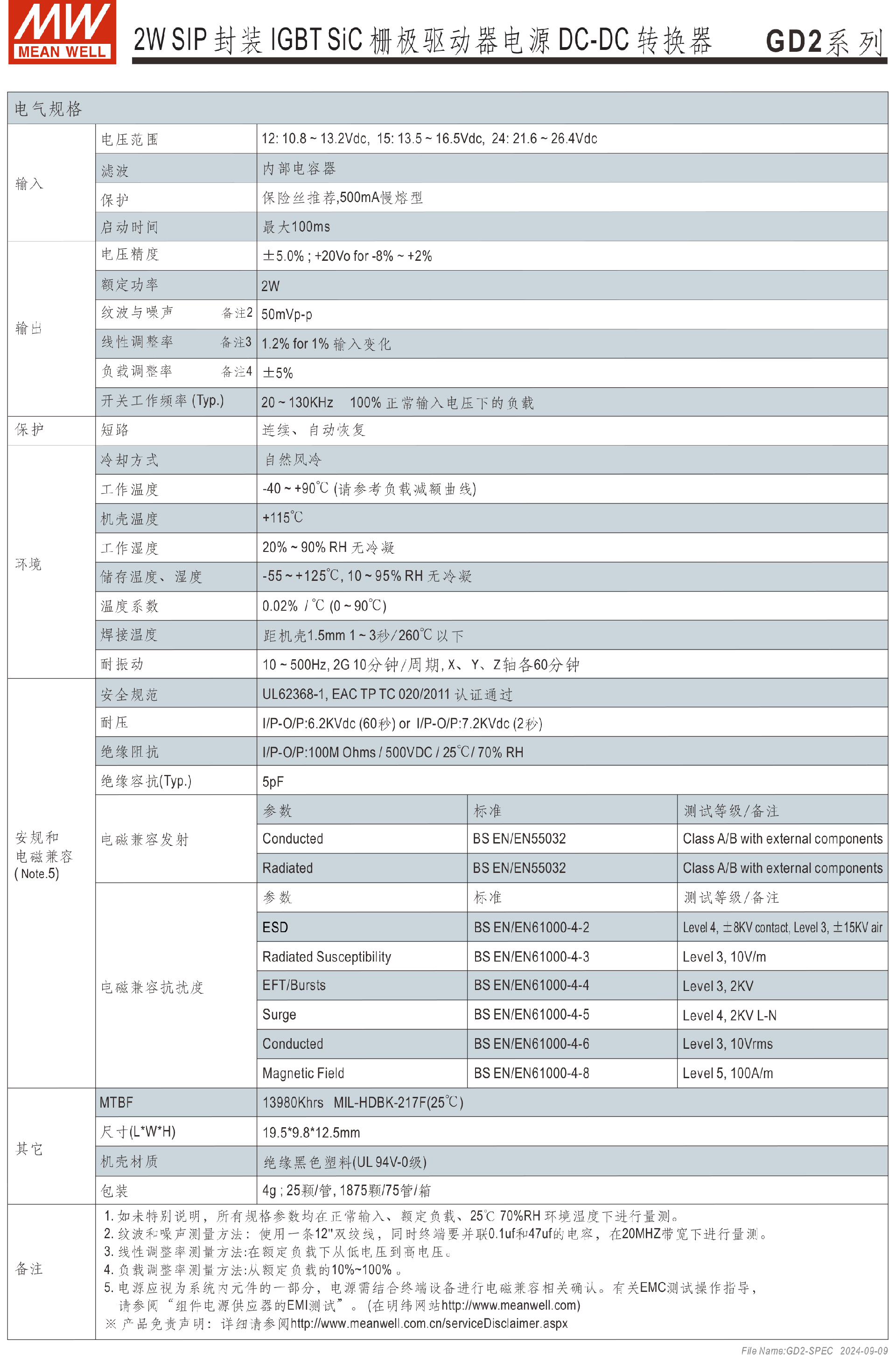 明纬电源SMU02系列2W DC-DC不稳压单组输出转换器