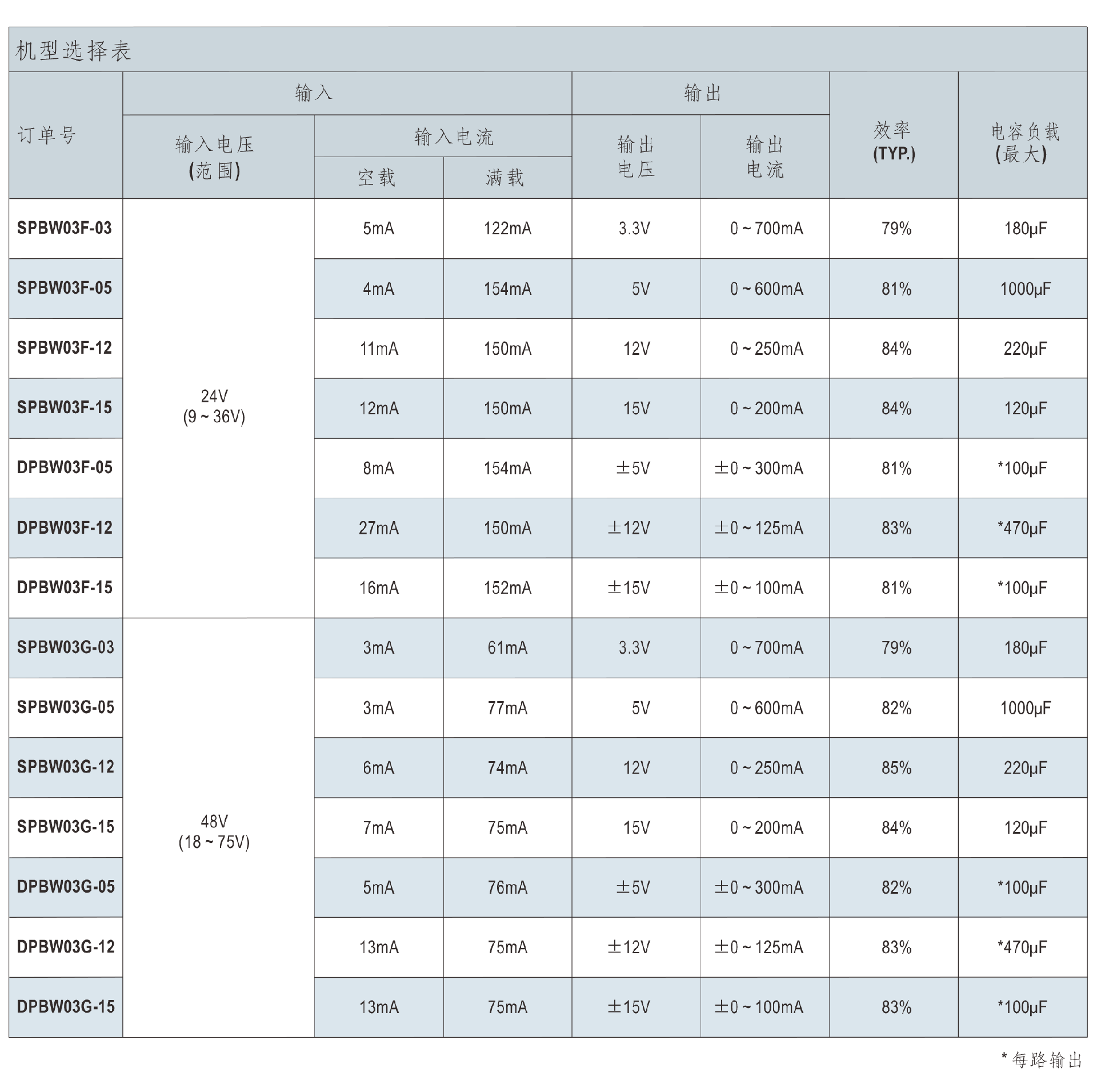 明纬电源SPU03系列3W DC-DC不稳压单组输出转换器