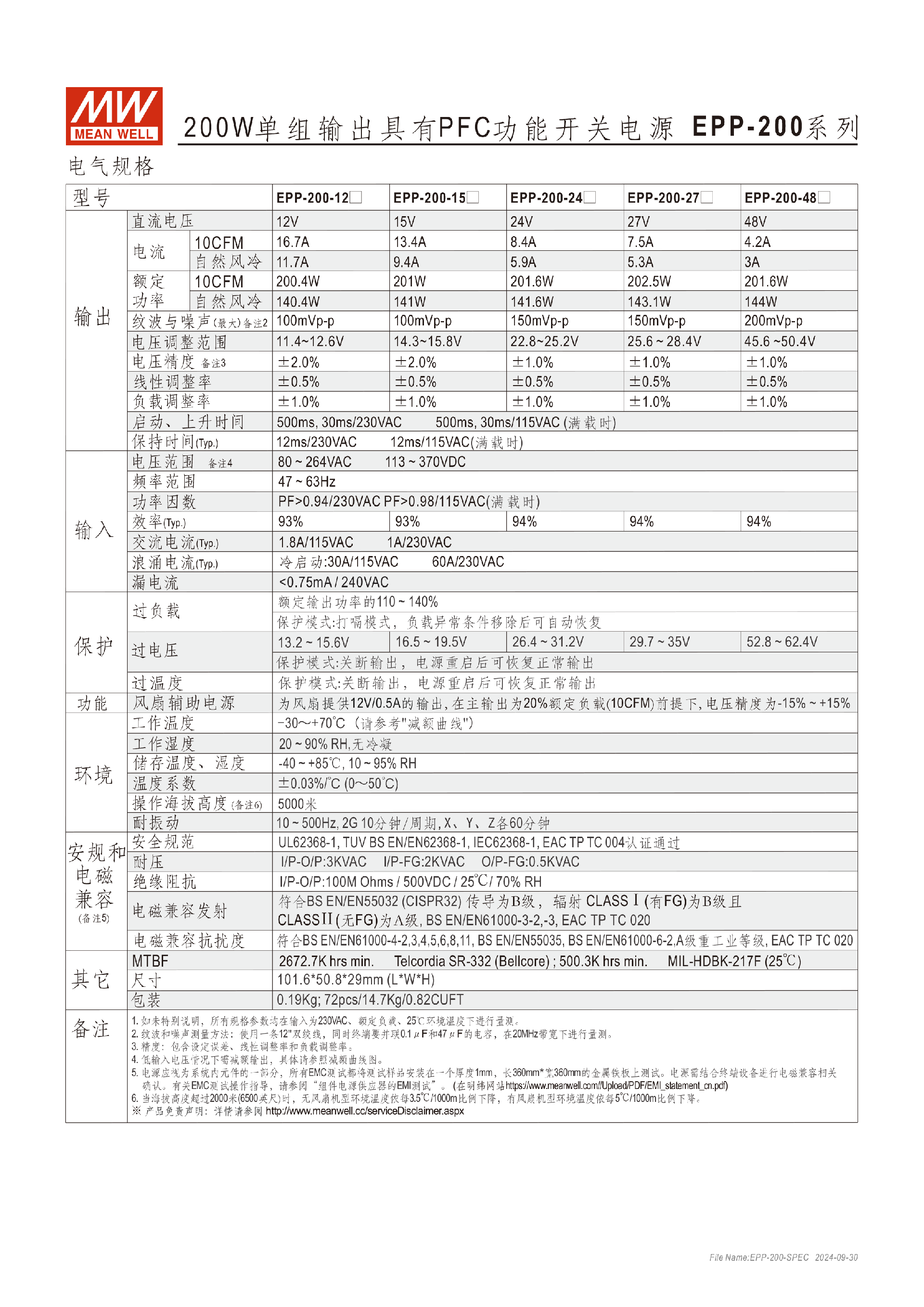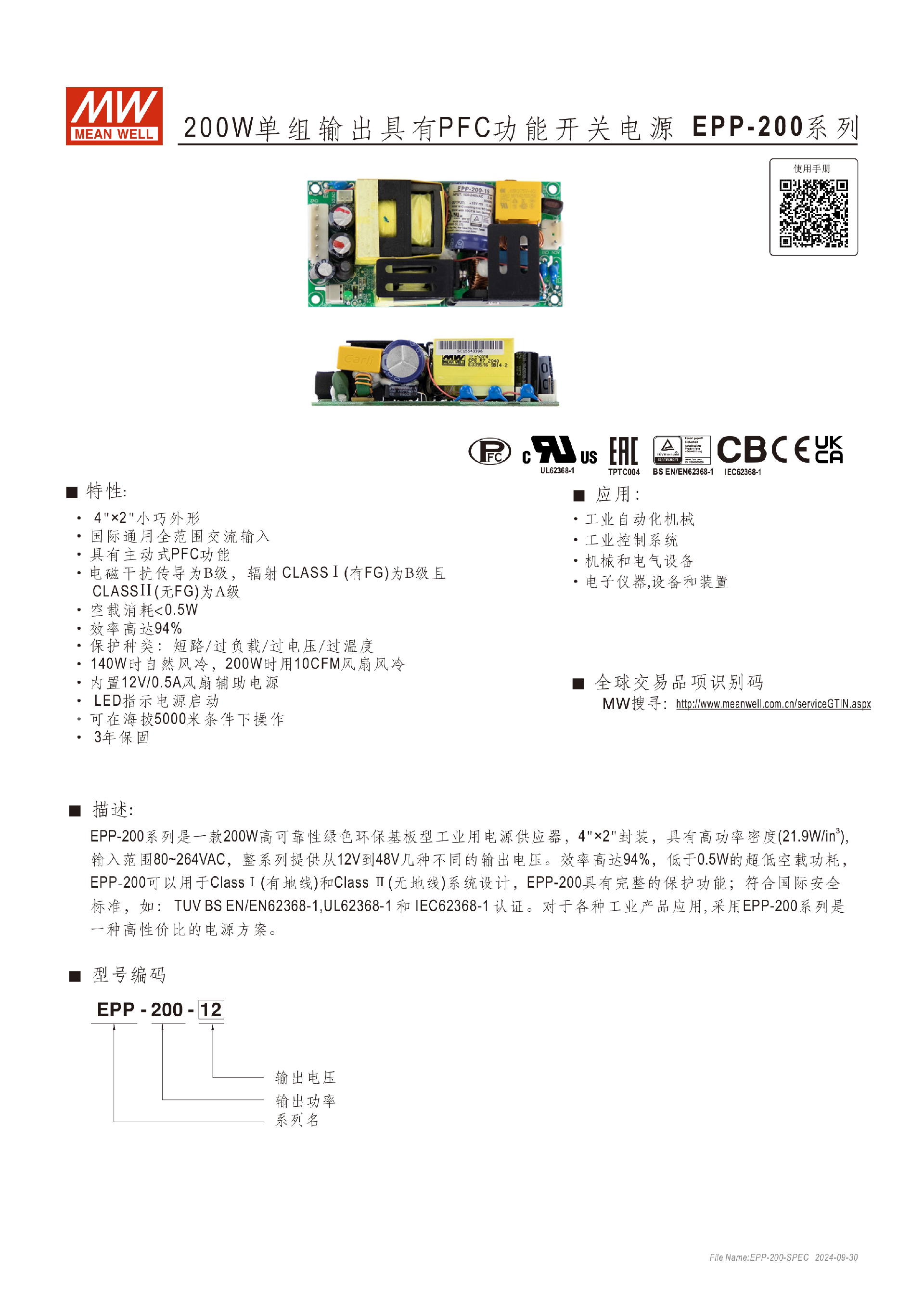 台湾明纬EPP-120S系列120W基板型电源供应器