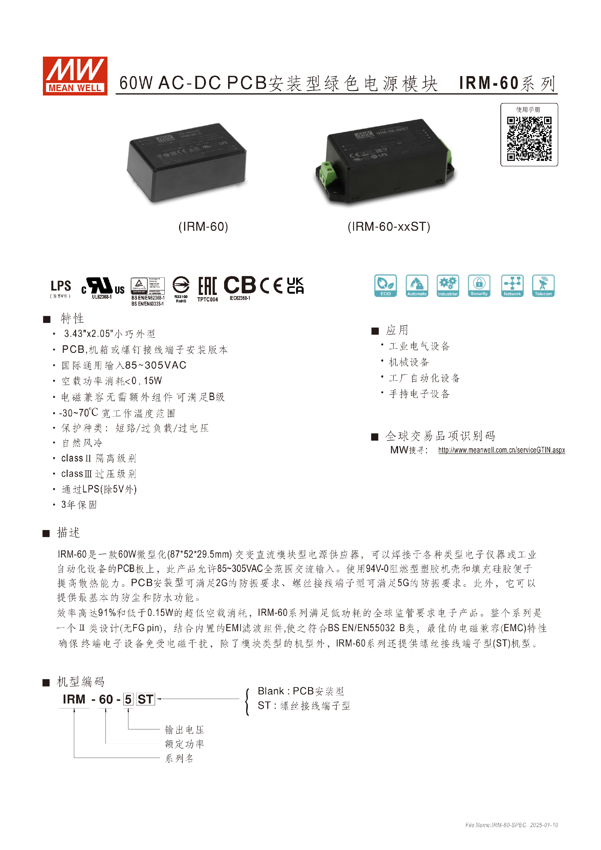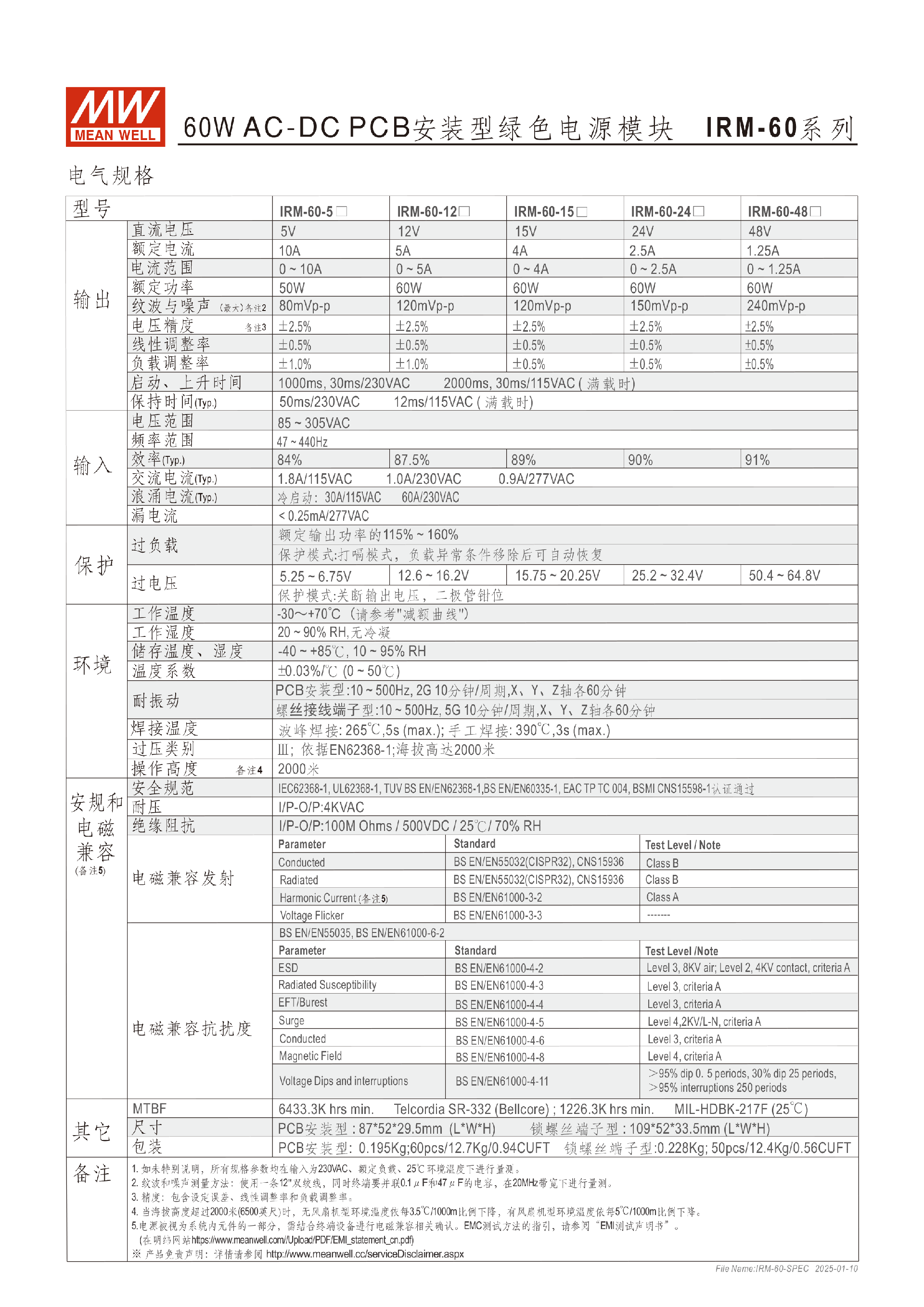 明纬IRM-01系列1W模块型电源