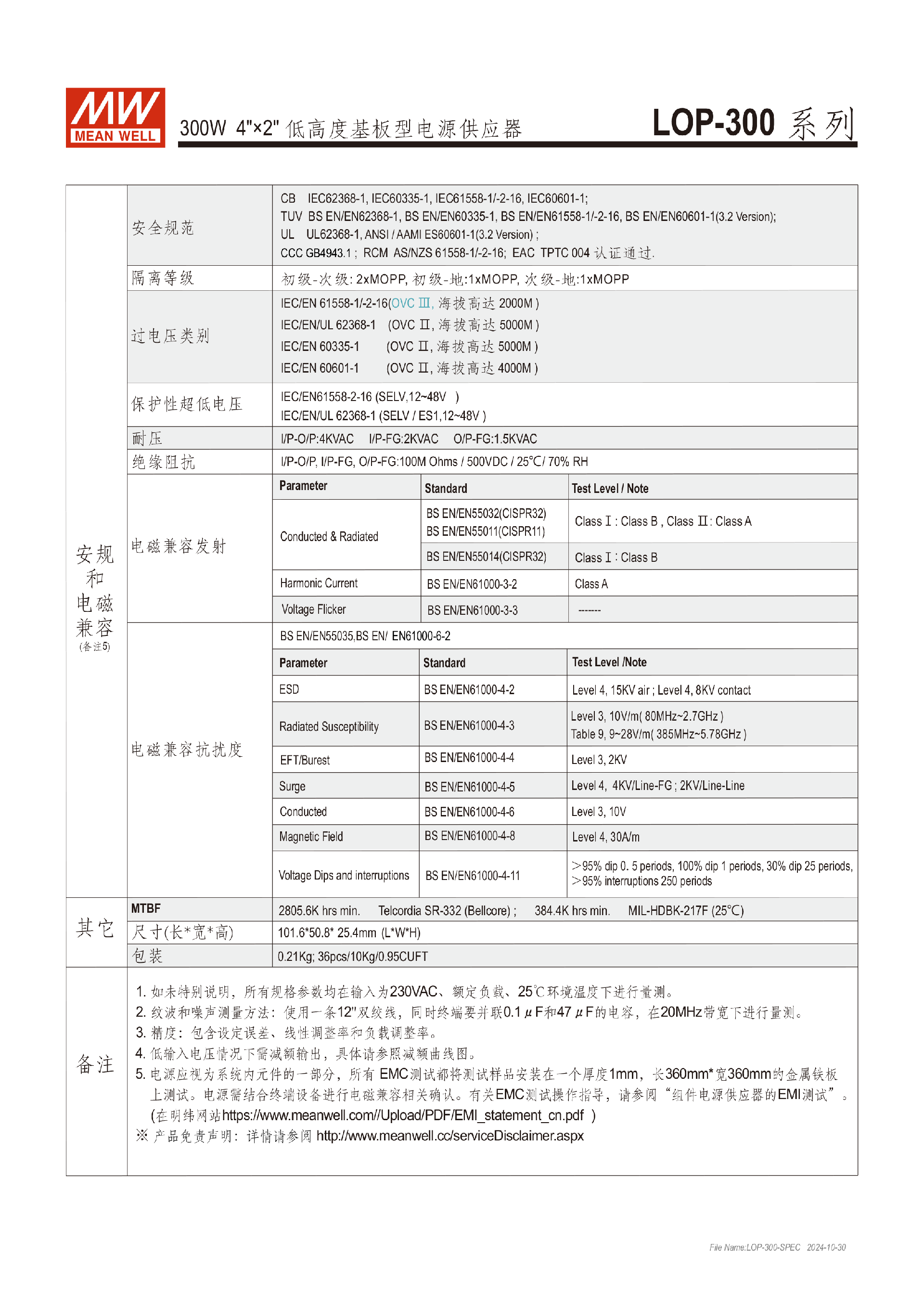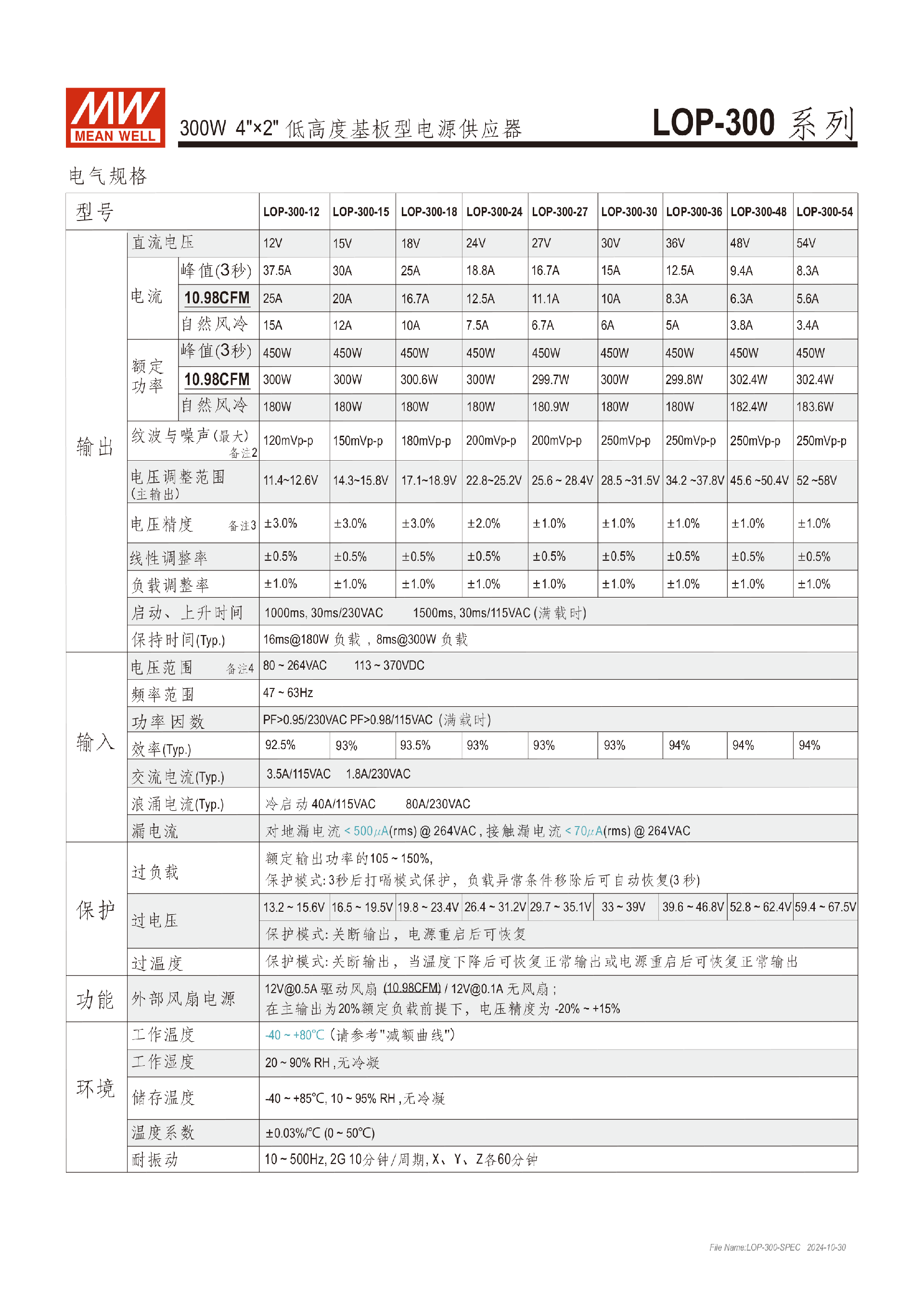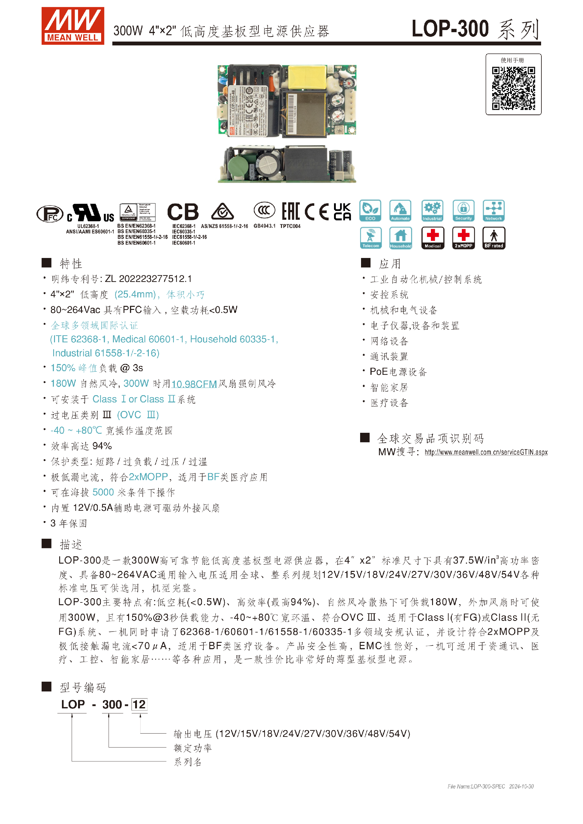 台湾明纬LOP-500系列基板型电源供应器医疗用电源
