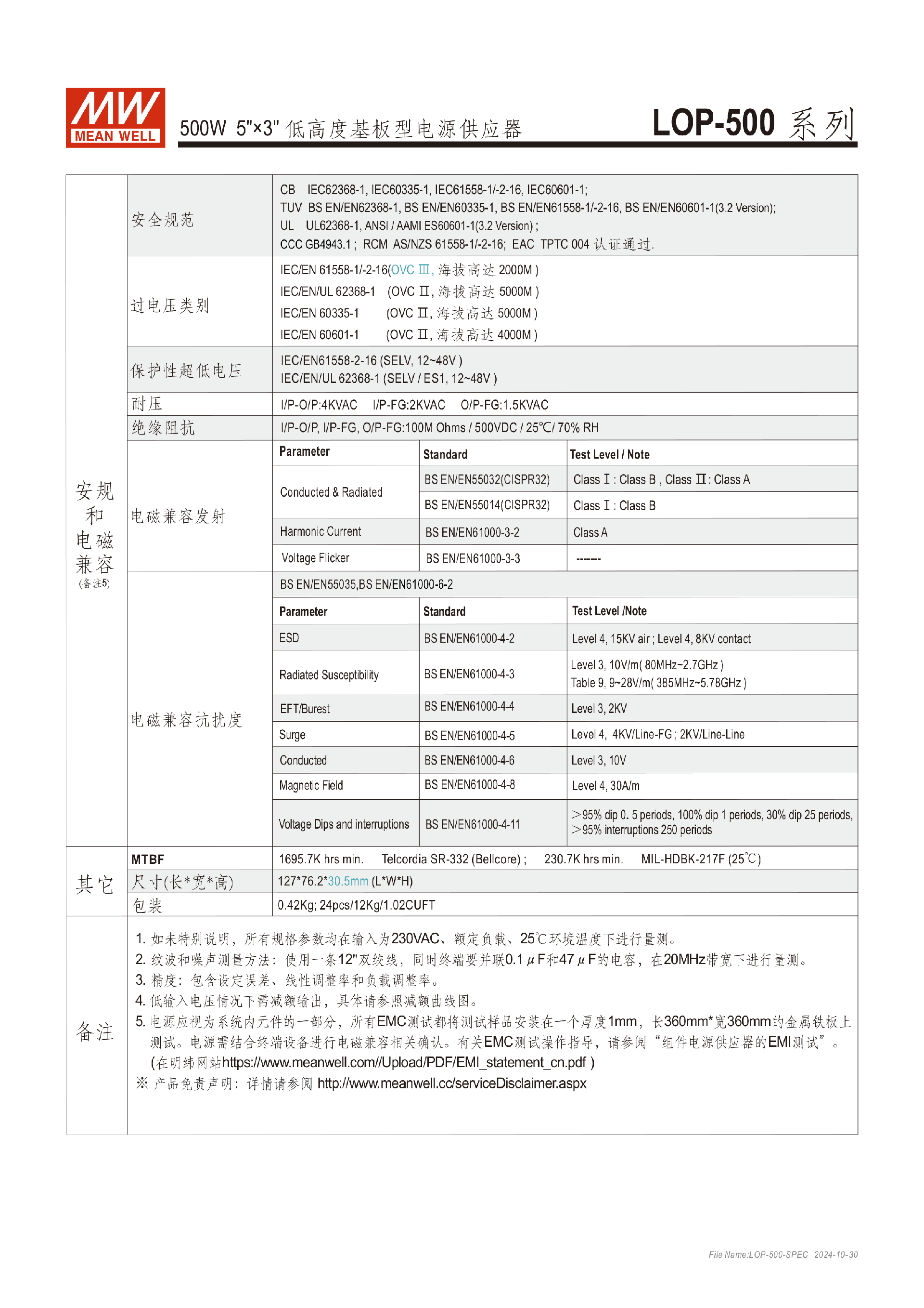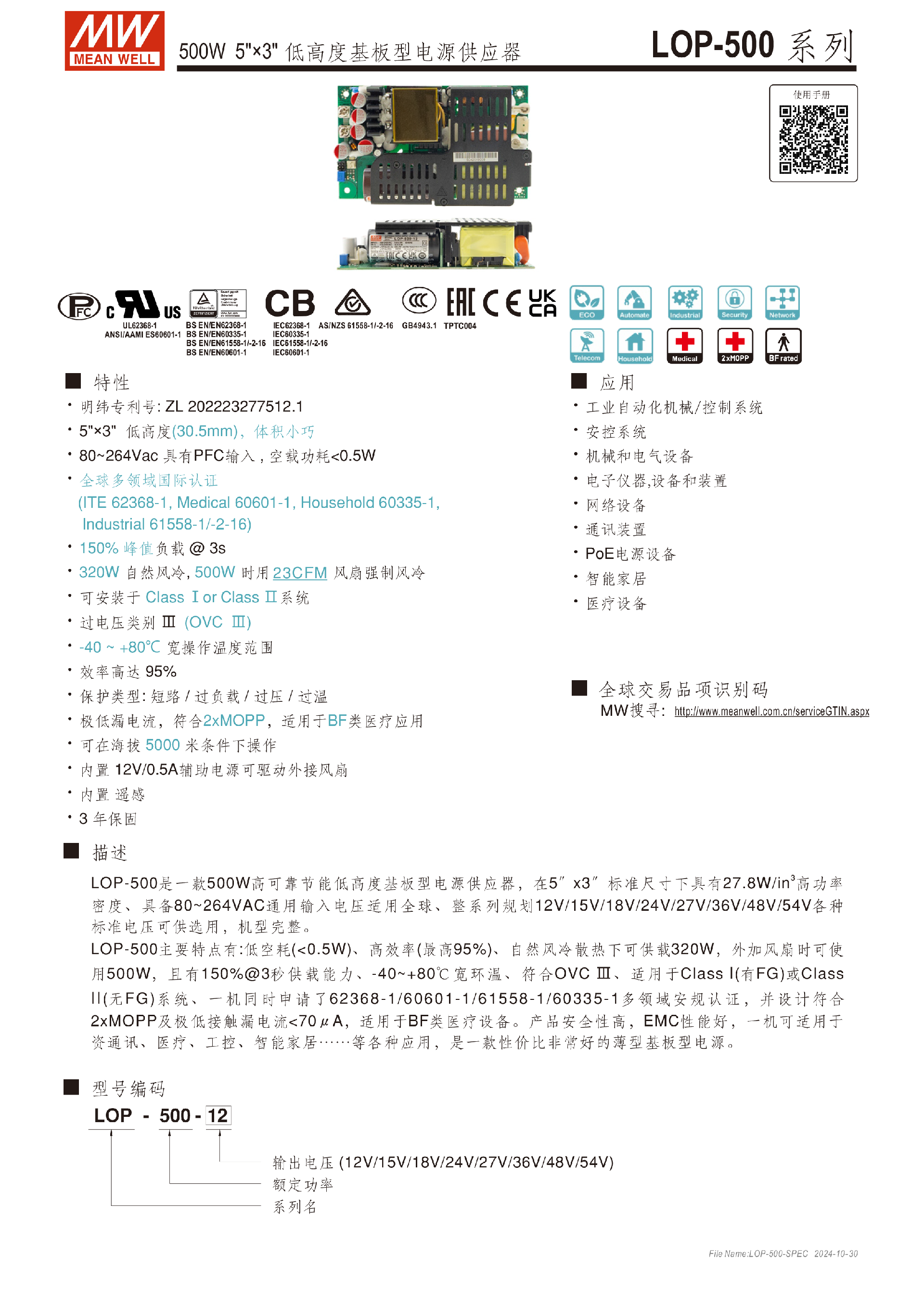 台湾明纬RPS-500系列500W医疗型电源供应器