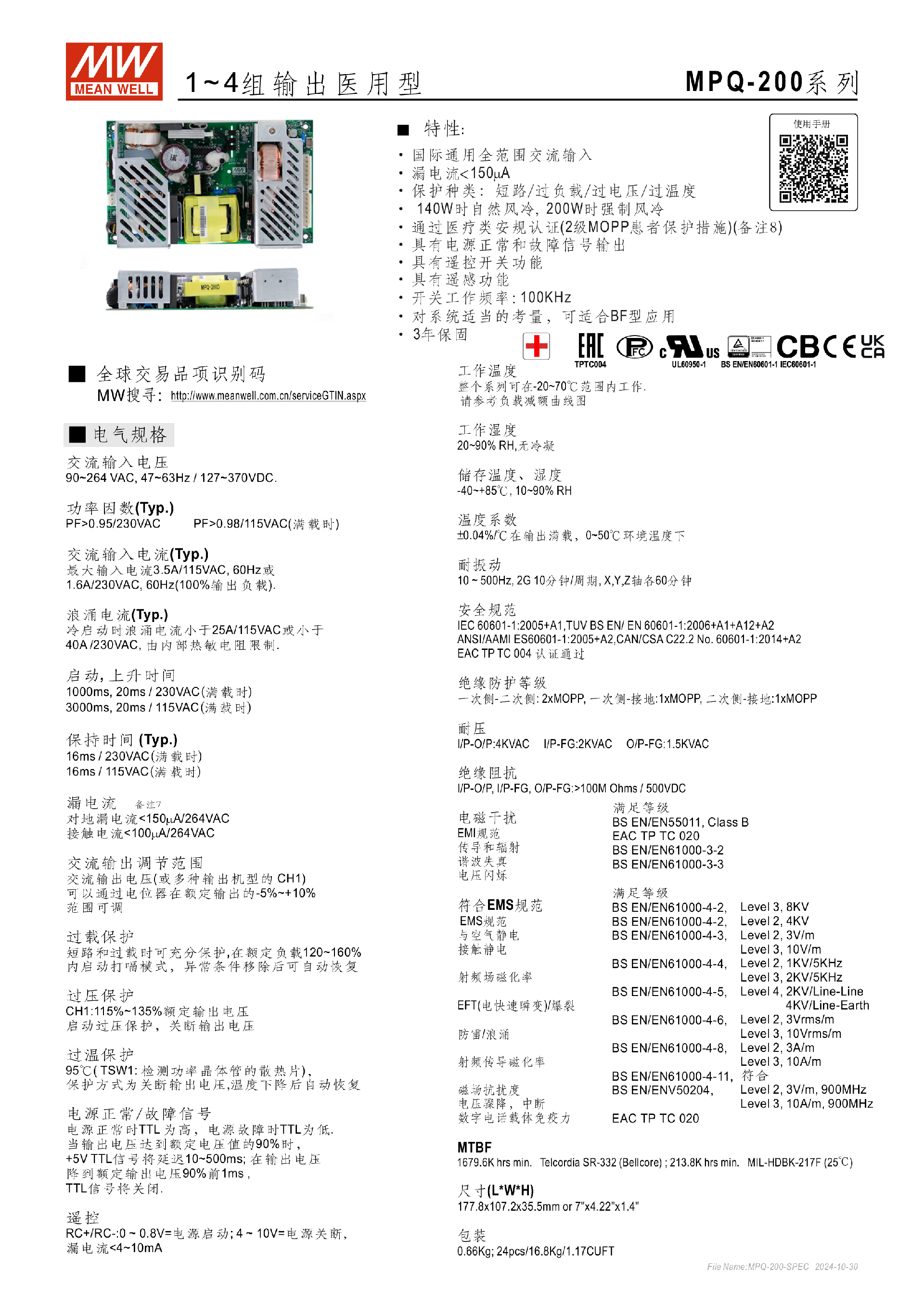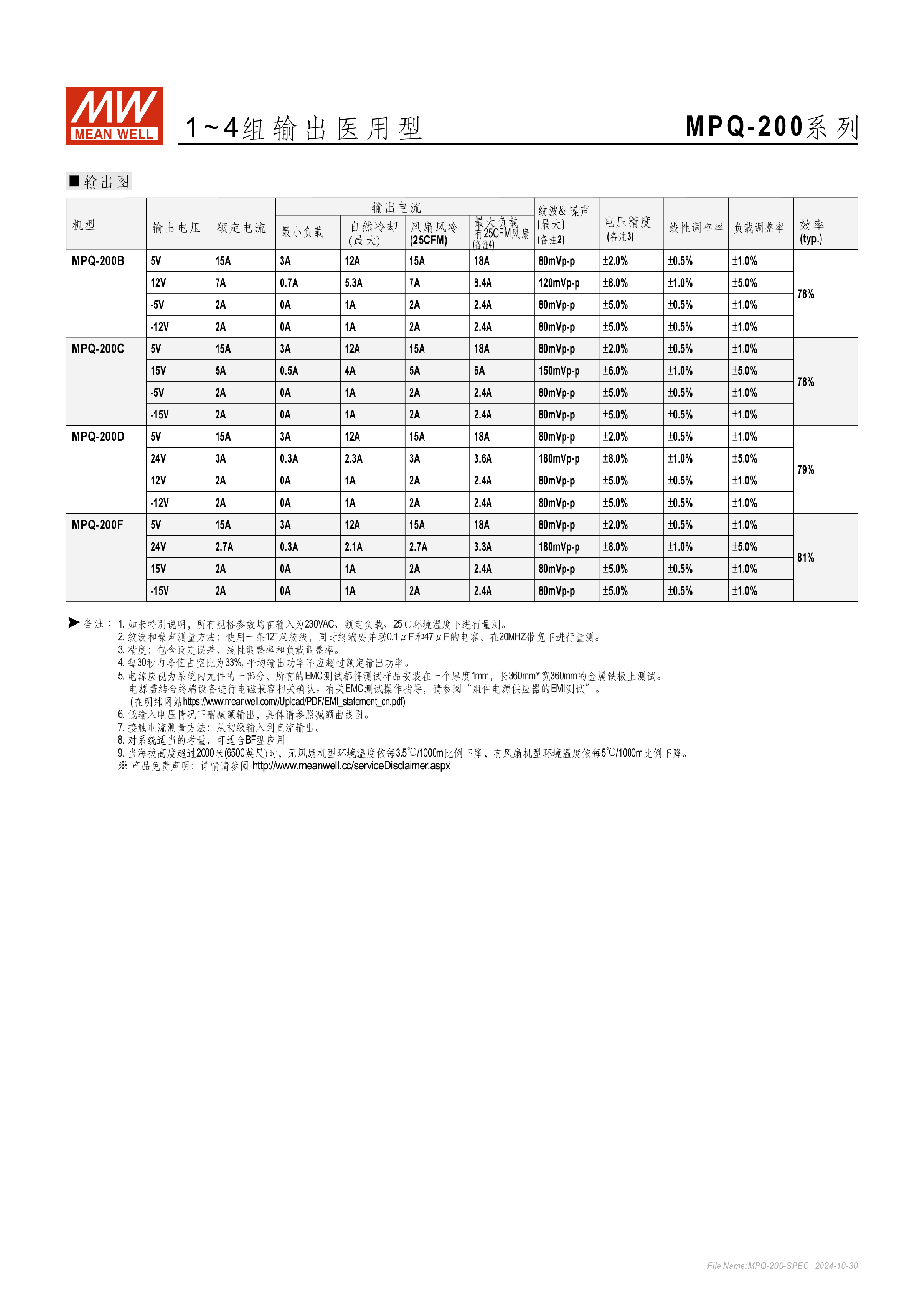 台湾明纬MPM-10系列医疗封闭型电源