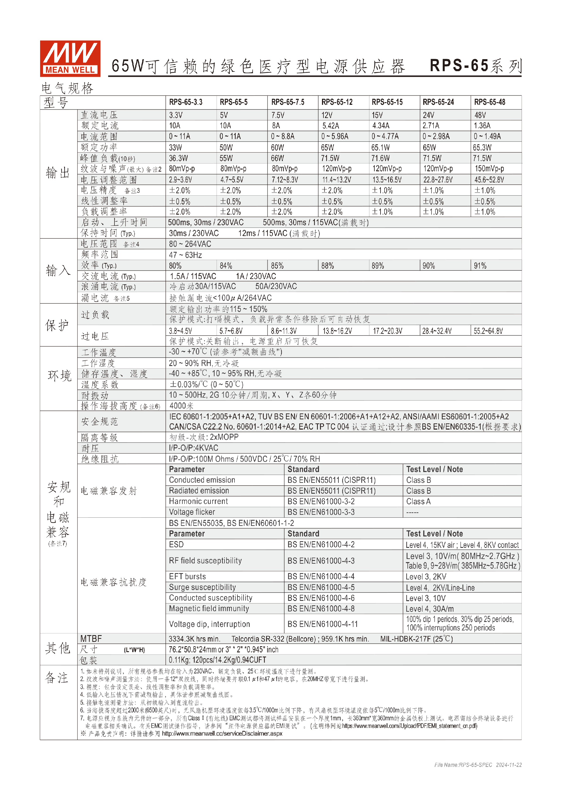 台湾明纬RPS-160系列160W医疗型电源供应器