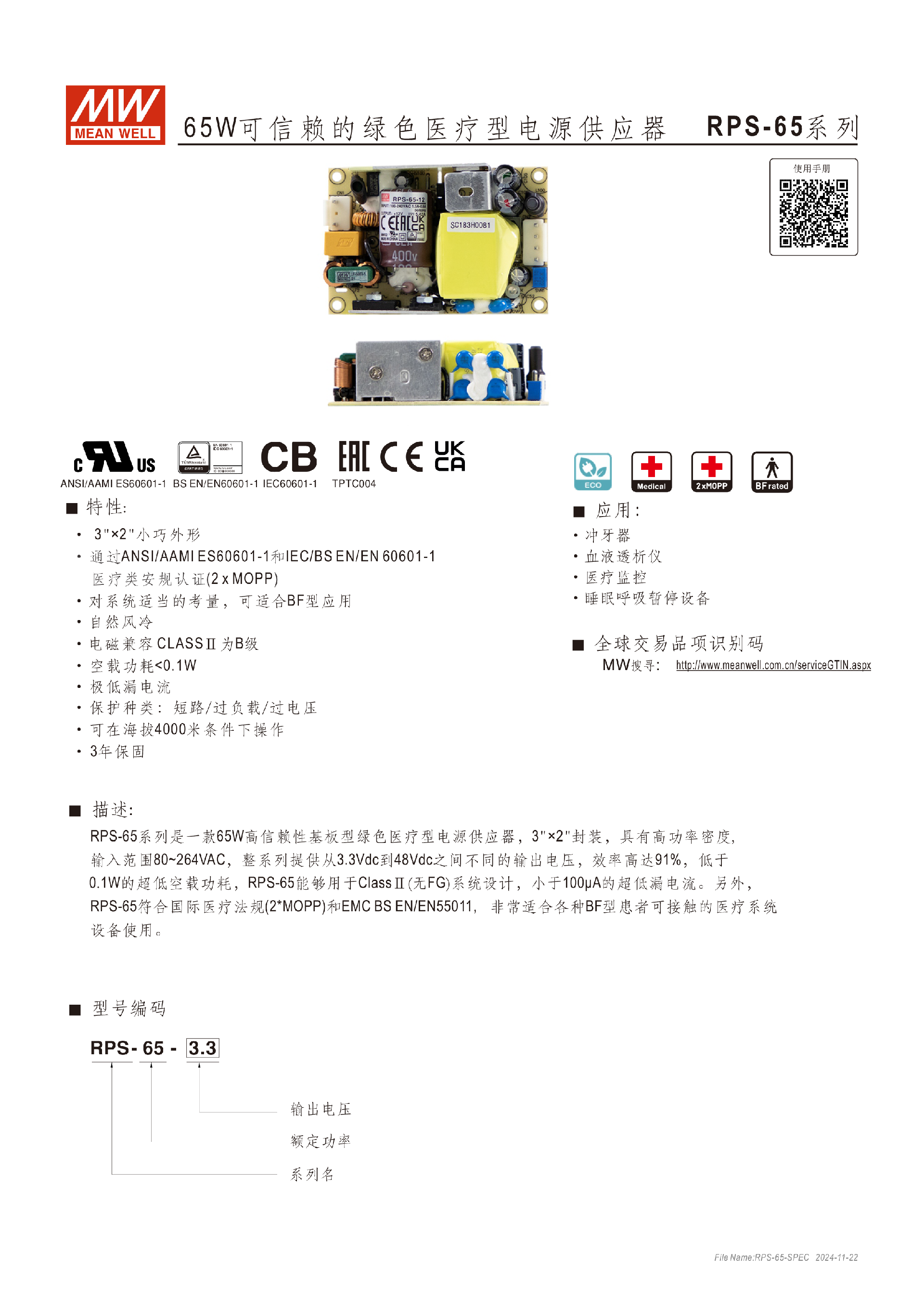 台湾明纬RPT-60系列三组输出医疗电源供应器