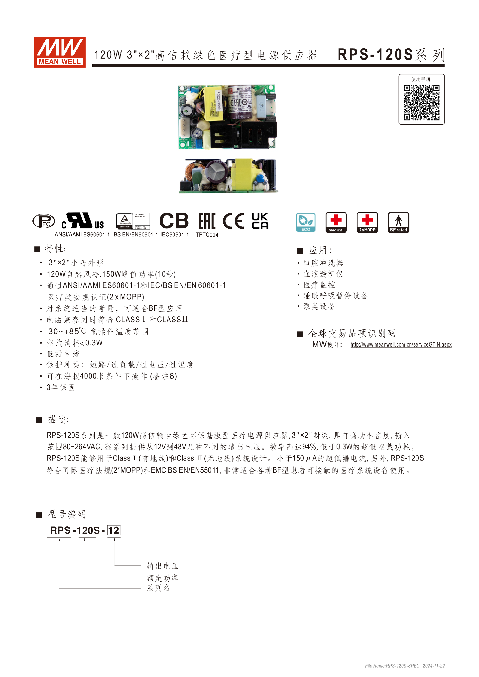 台湾明纬RPS-500系列500W医疗型电源供应器